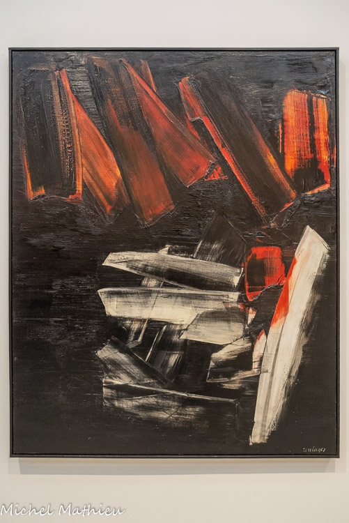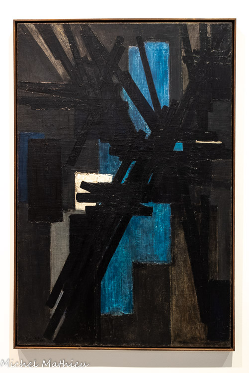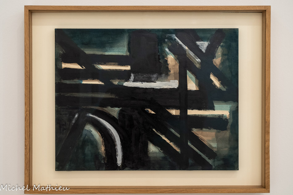 Présentée à la galerie de France en 1951 puis à la Biennale de Venise en 1952, cette toile est composée de grandes diagonales noires formant un réseau noueux, qui prend place sur des bandes colorées à l’arrière-plan.
