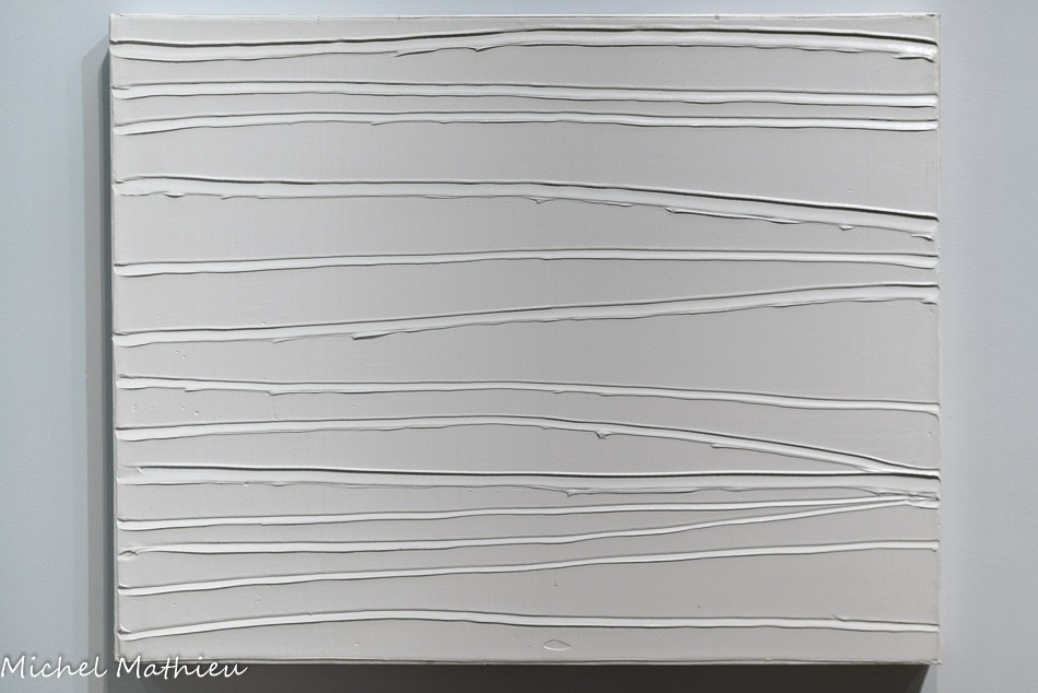 Un carré blanc légèrement décentré vient illuminer la surface rugueuse. L’œuvre est très vite repérée et acquise par Alfred Barr, conservateur du Muséum of Modem Art de New York. Présentée dans plusieurs villes des États-Unis, à l’occasion de la grande exposition collective « The New Decade », celle-ci est finalement restituée à l’artiste en 1984, échangée contre une autre par le MoMA, puis donnée au musée Fabre en 2005.
