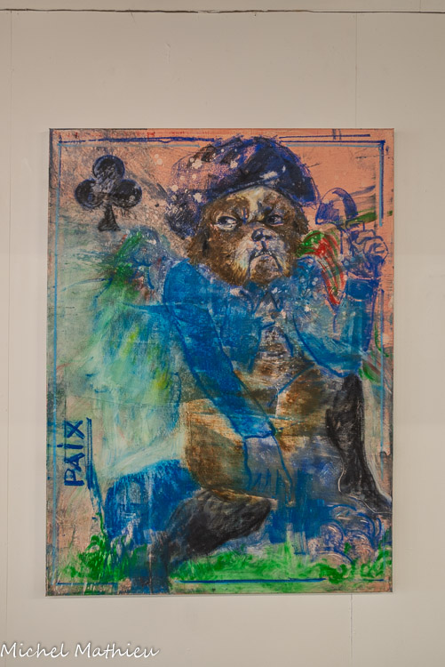 Dans cette exposition, il s'agit de cartes à jouer démesurées, ce qui confirme cette volonté de rappeler la planéité de la surface. Les personnages sont hybrides à plus d'un titre : d'abord, même si le corps peut passer pour humain, l'artiste lui prête la tête d'un animal, plutôt canin et plutôt inquiétant tel le bouledogue ; or, à ce collage pictural s'ajoute la symbiose référentielle puisque l'artiste emprunte aux grands maîtres du passé en matière de portrait et plus particulièrement à ceux qui incarnent le pouvoir. La vie est un jeu de pouvoir, de cruauté et de mort et il faut savoir se jouer de ces deux astreintes. C'est ce que nous dit Fôrstner avec sa peinture déchainée, puissante et qui flirte souvent avec une vision grotesque, carnavalesque, violente de l'humanité et réclame que l'on fasse tomber les masques, devant le grand flux vital et temporel qui nous emporte tous, y compris les qu'on dit grands.