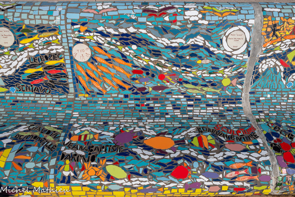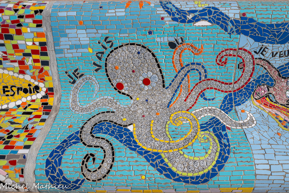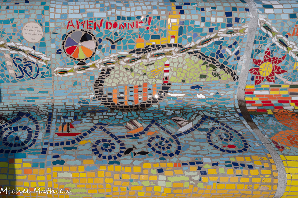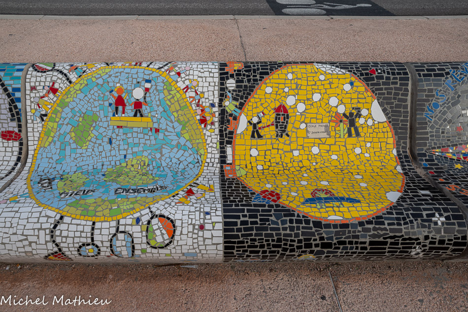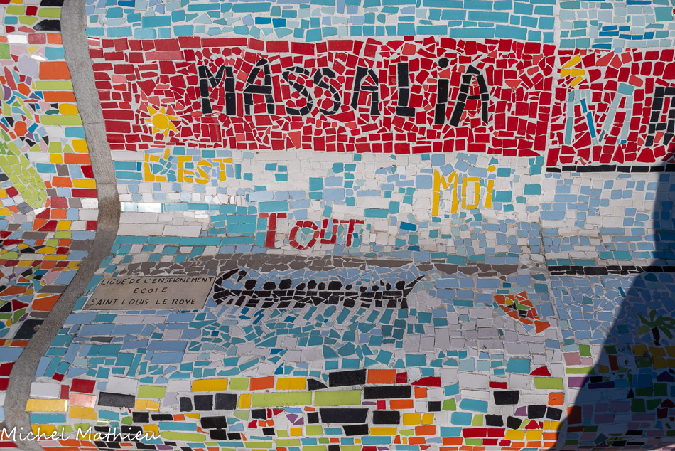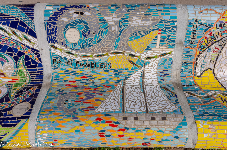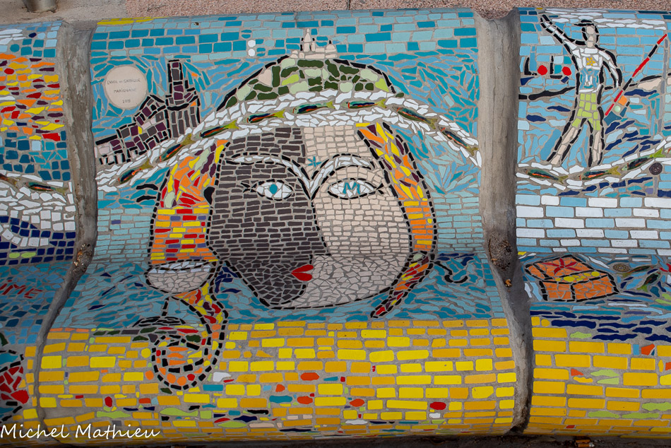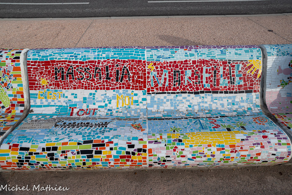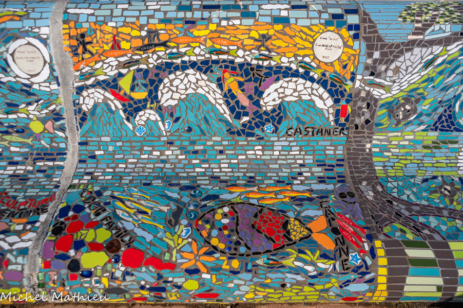 Bancs Ulule, Ecole Pharo-Catalans, 13007, 2019. Les petits poisons portent les noms de élèves.