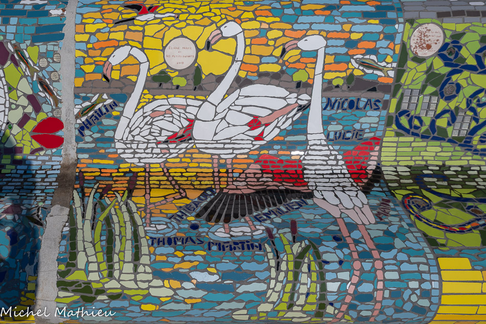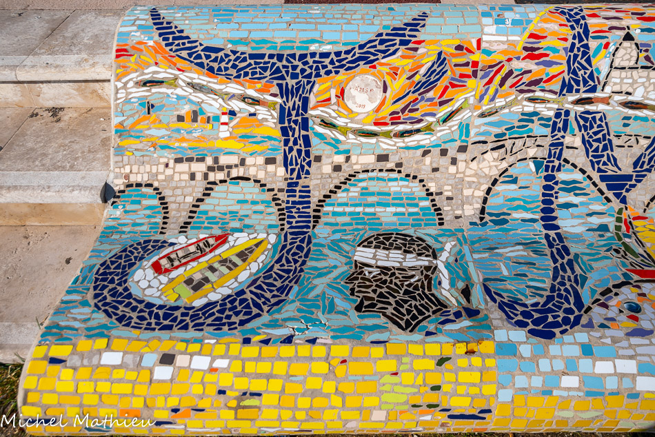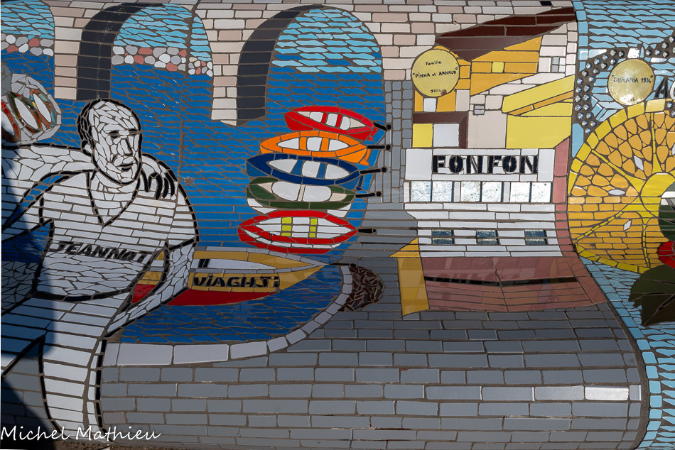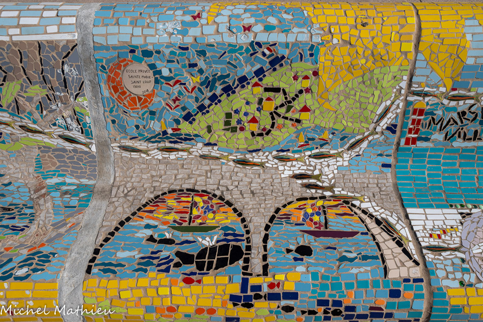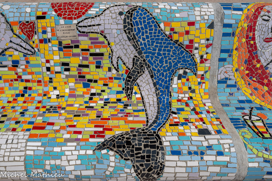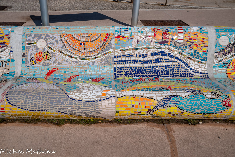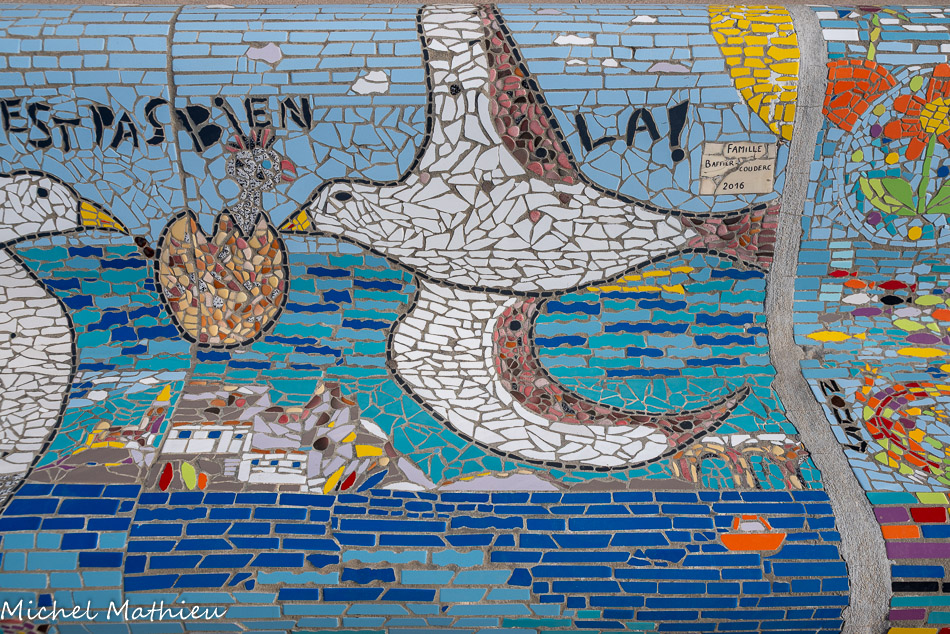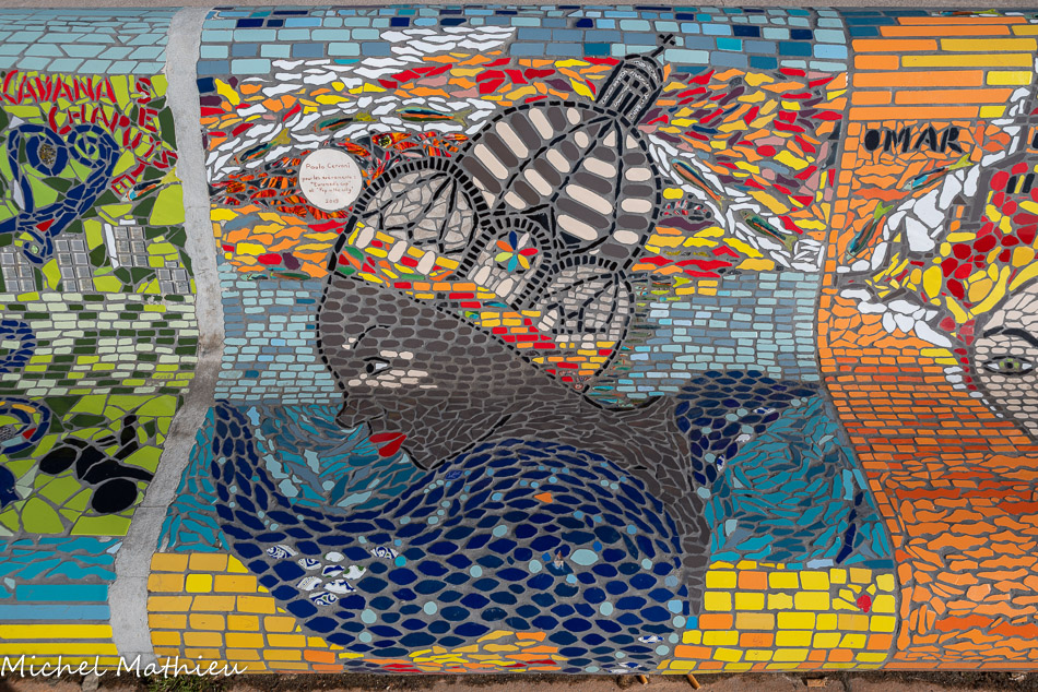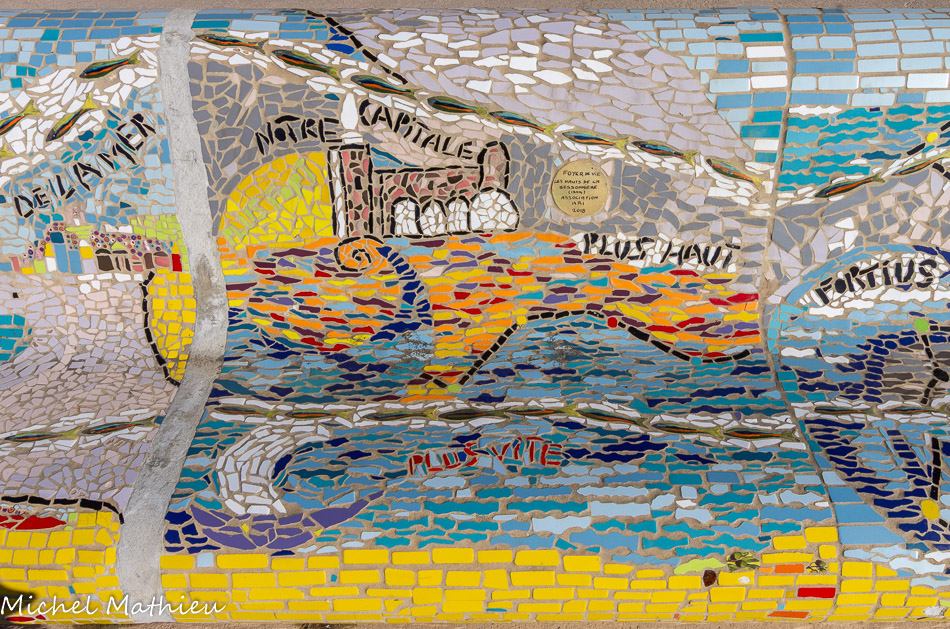 Bancs Ulule, Ecole Pharo-Catalans, 13007, 2019. Les petits poisons portent les noms de élèves.