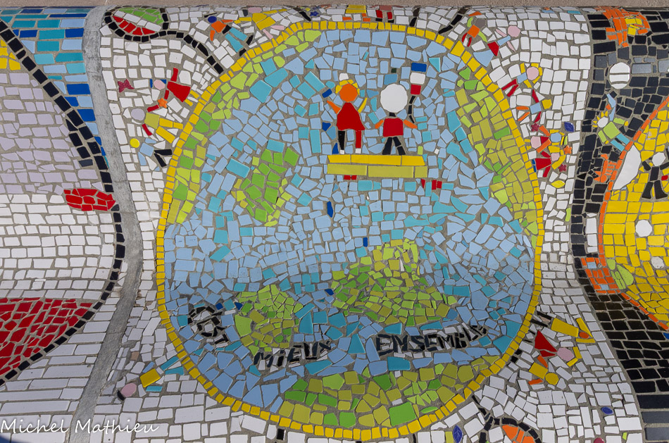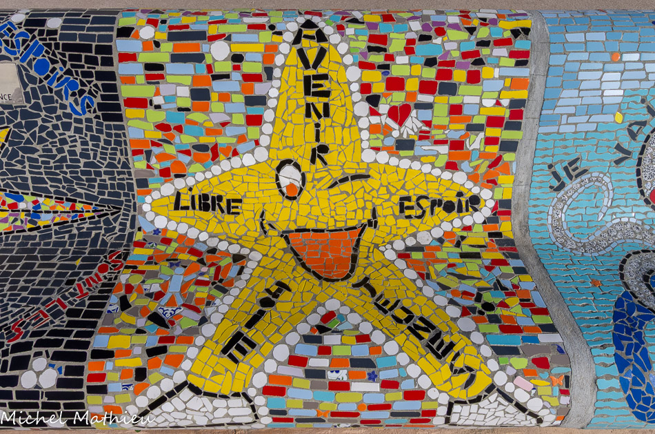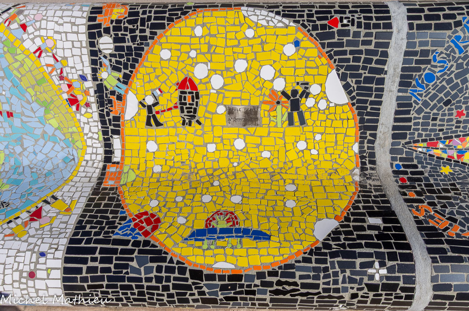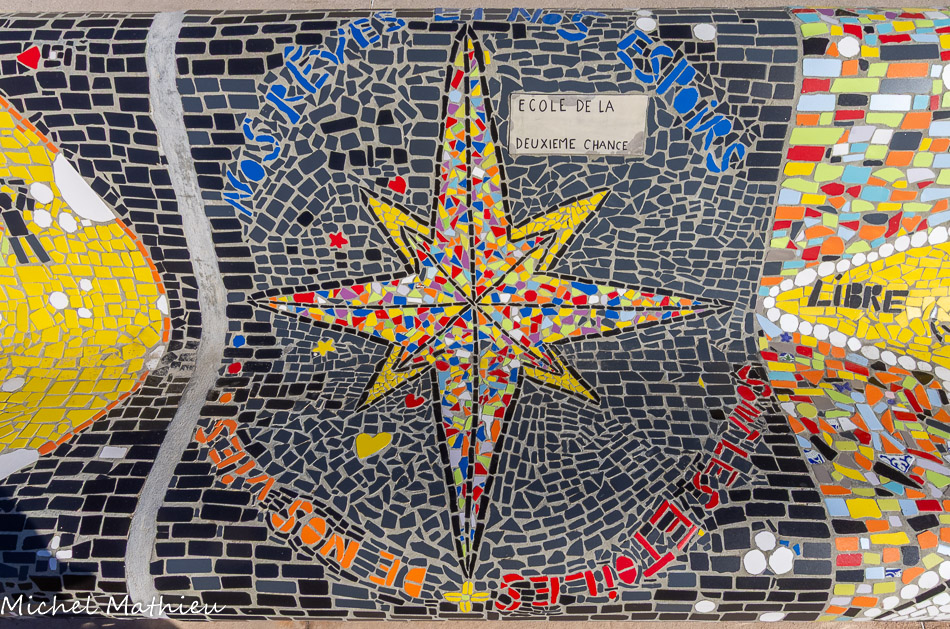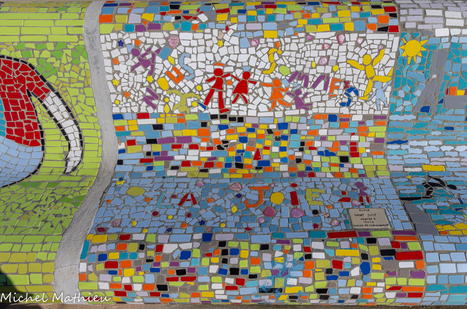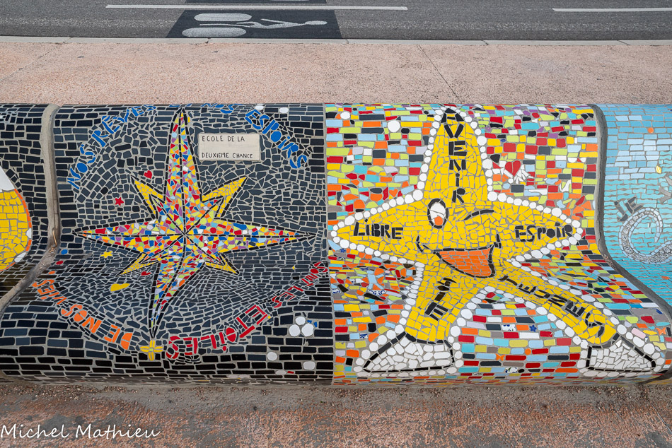 Bancs Ulule, Ecole Saint Joseph, Servières, 13015, 2019. Bancs Ulule, Ecole Saint-Louis Consolat, 13015, 2019. Les petits poisons portent les noms de élèves.