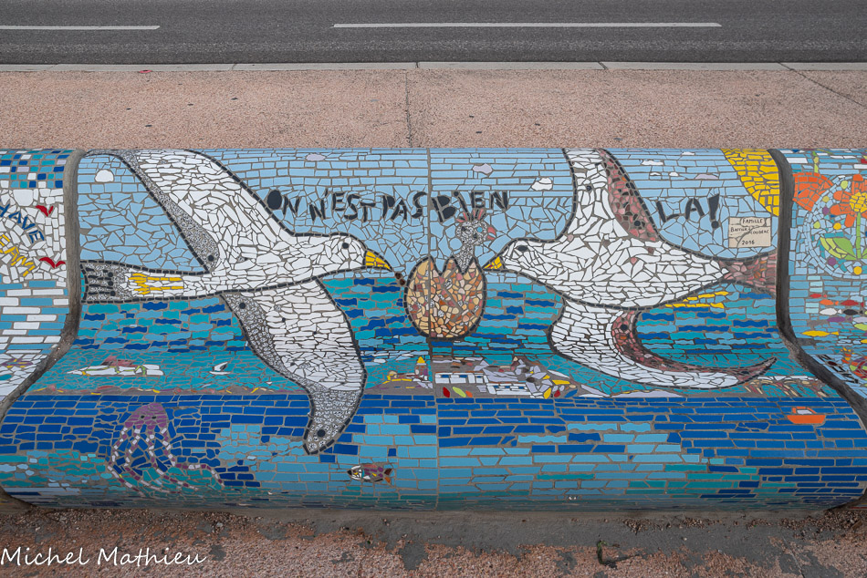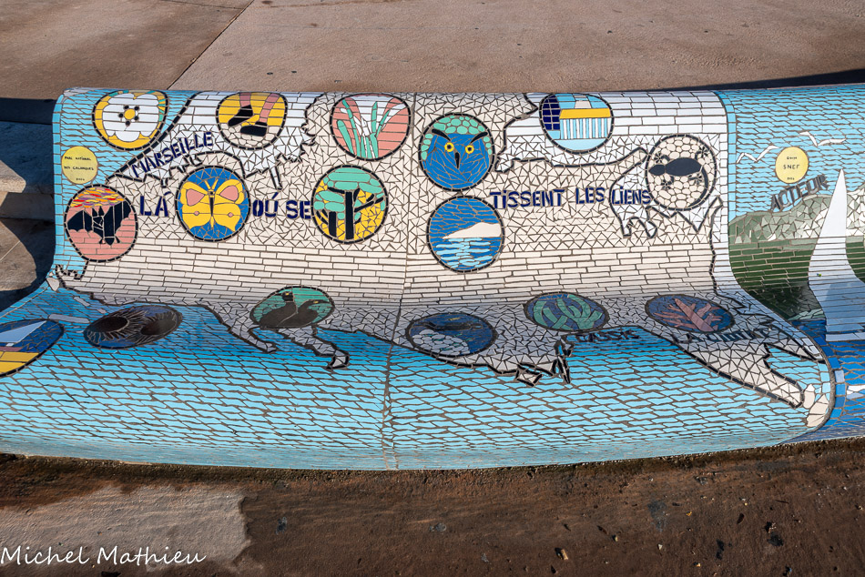 Bancs Ulule, Ecole Pharo-Catalans, 13007, 2019. Bancs Ulule, Ecole Olivier-Gillibert, 13015, 2019. Les petits poisons portent les noms de élèves.