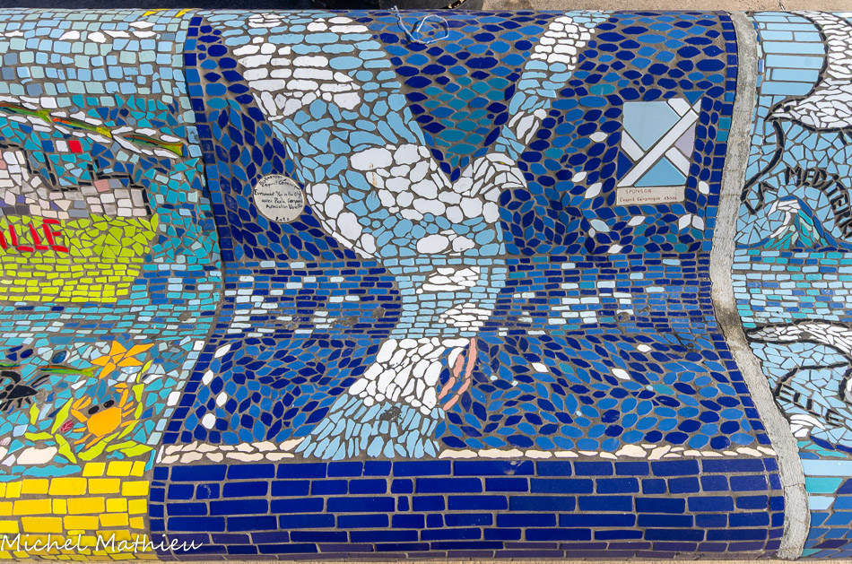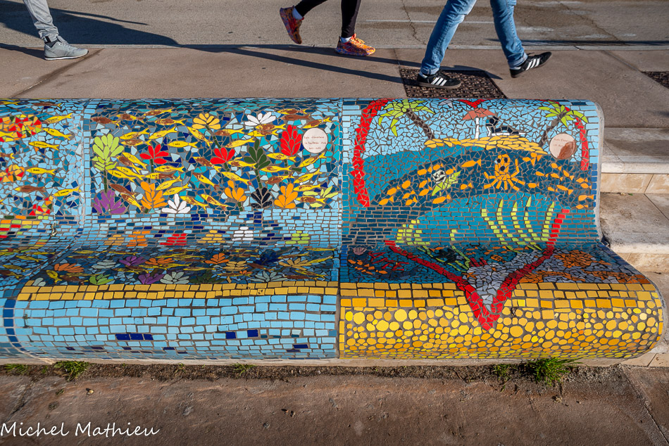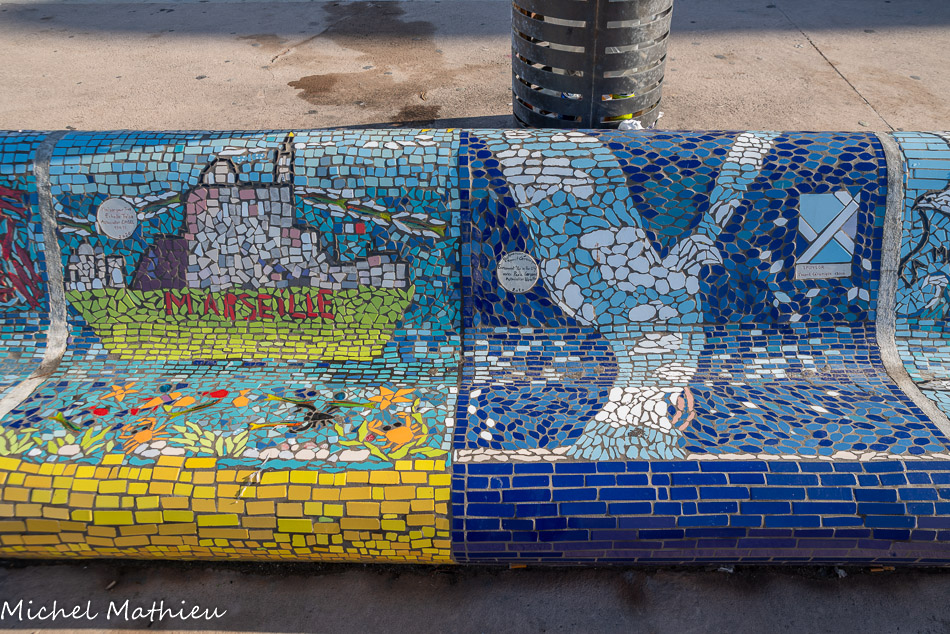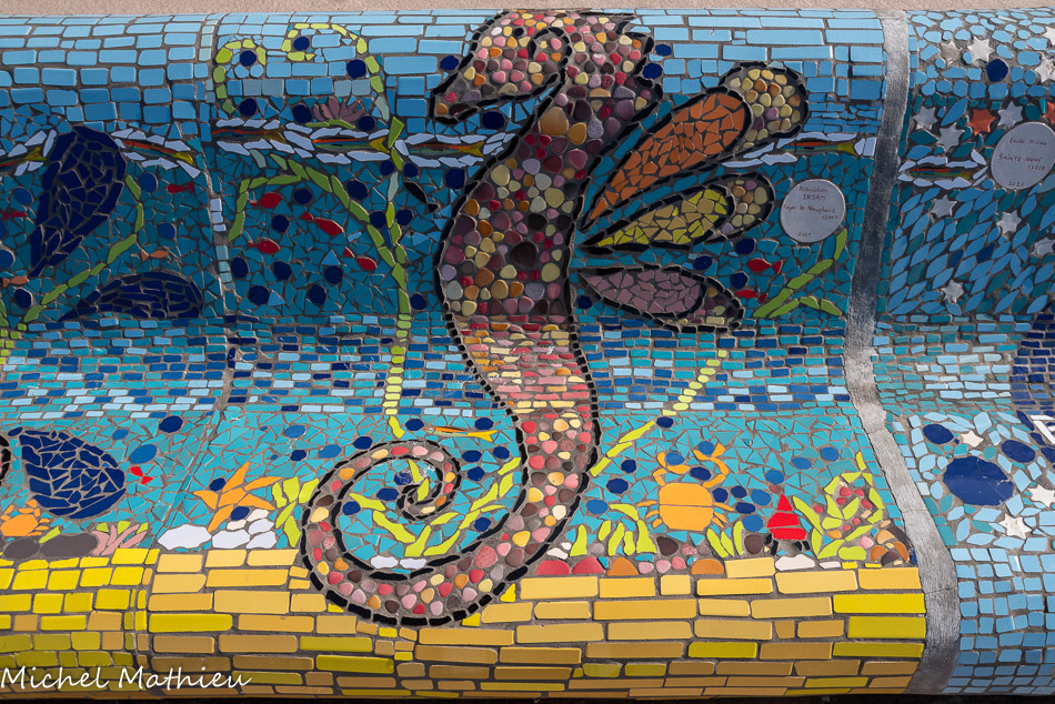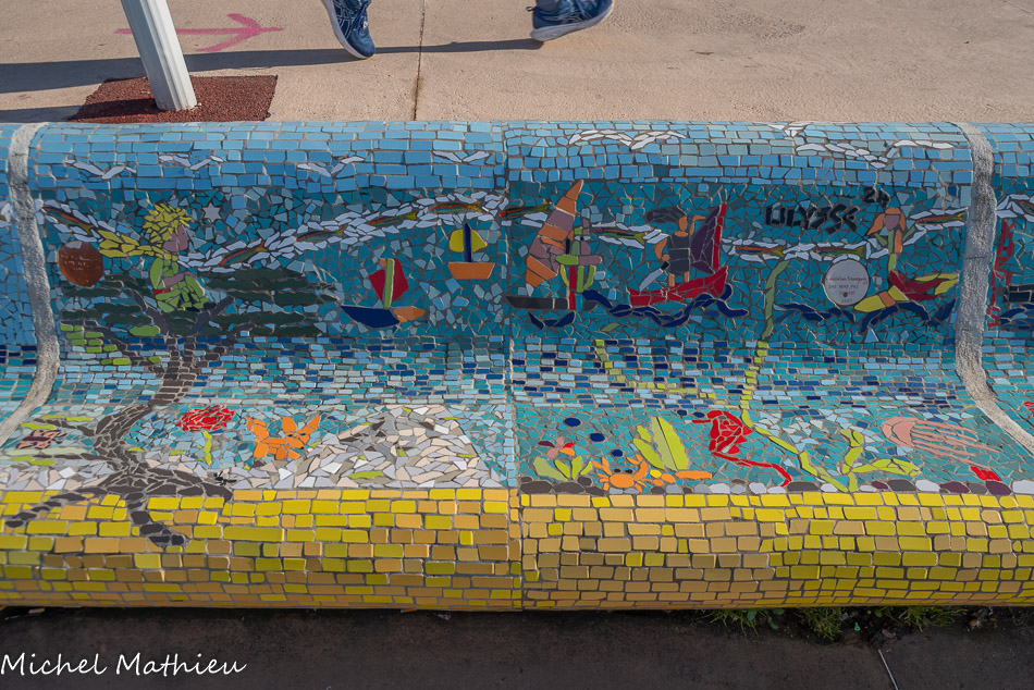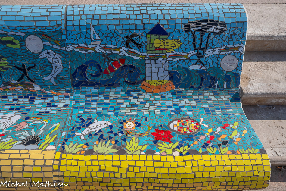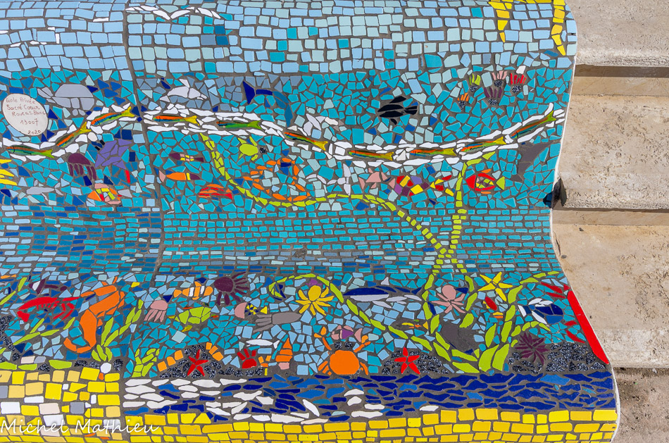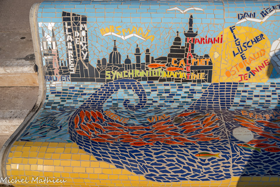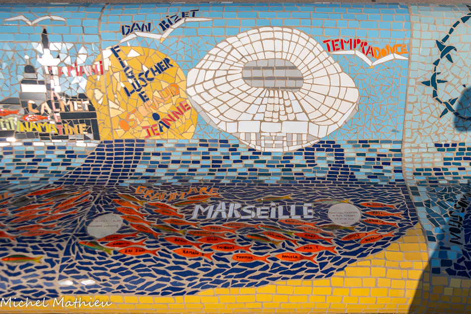 Bancs ULULE Ecole Maternelle Edouard Vaillant, Ecole National CP 13003. 2019. Les petits poissons portent les noms de élèves. AFTC 13, TC Club de Marseille, 2019.