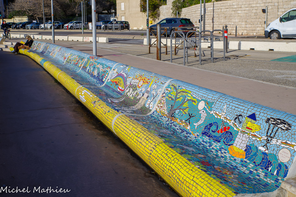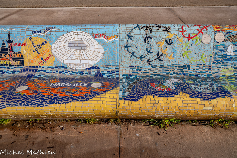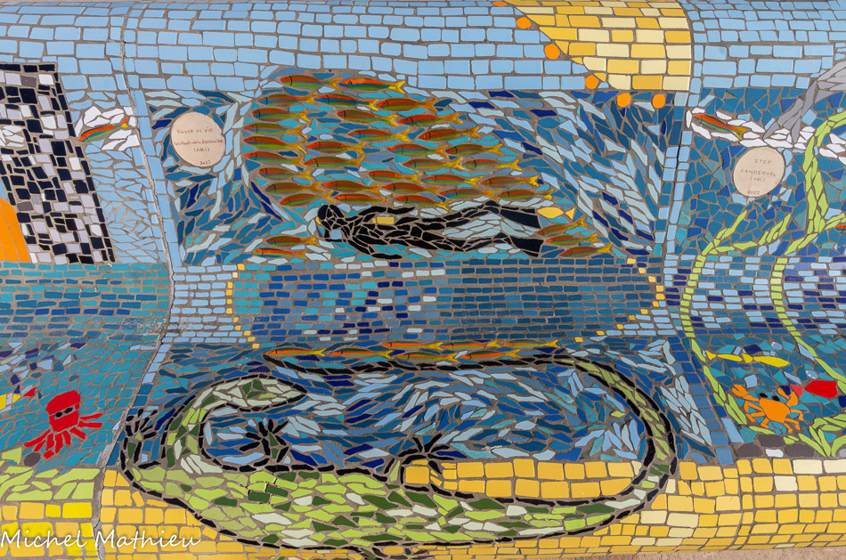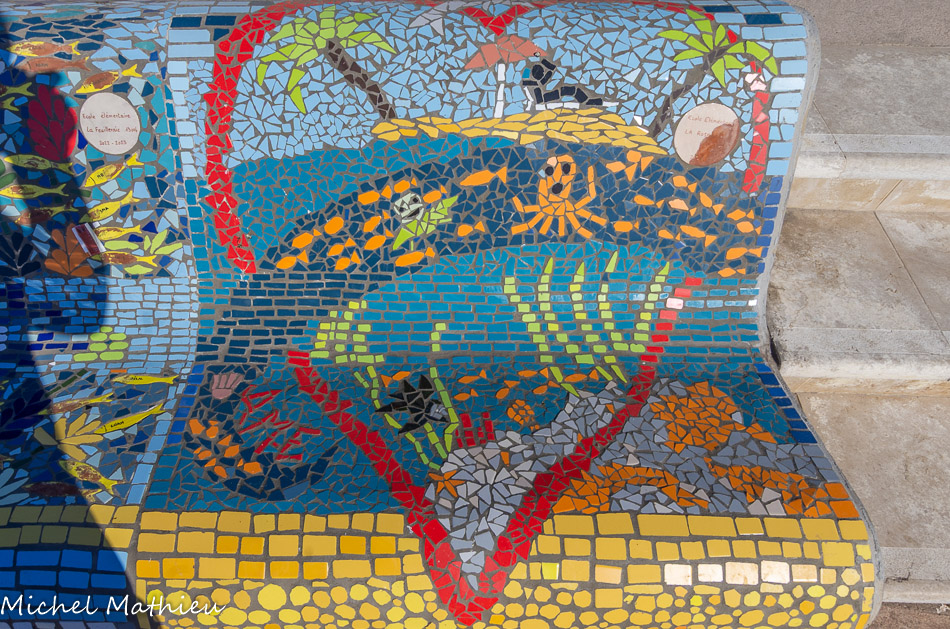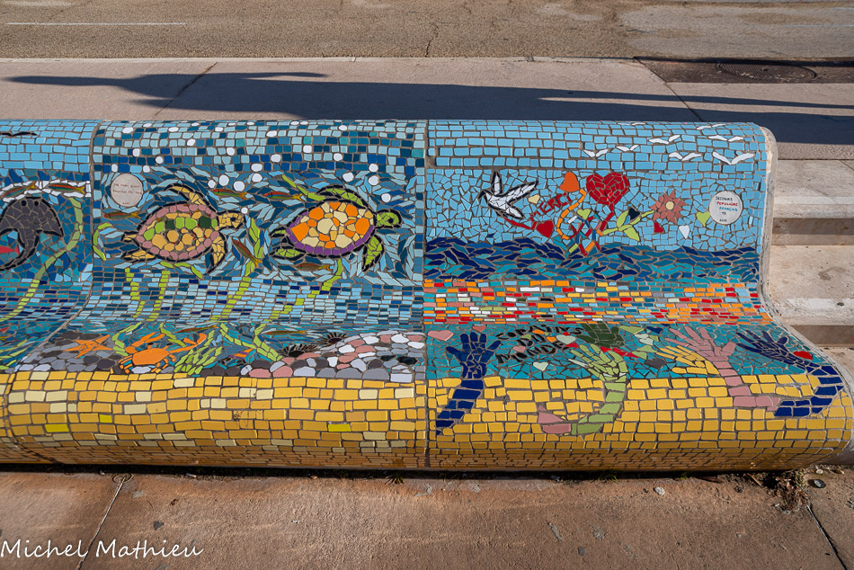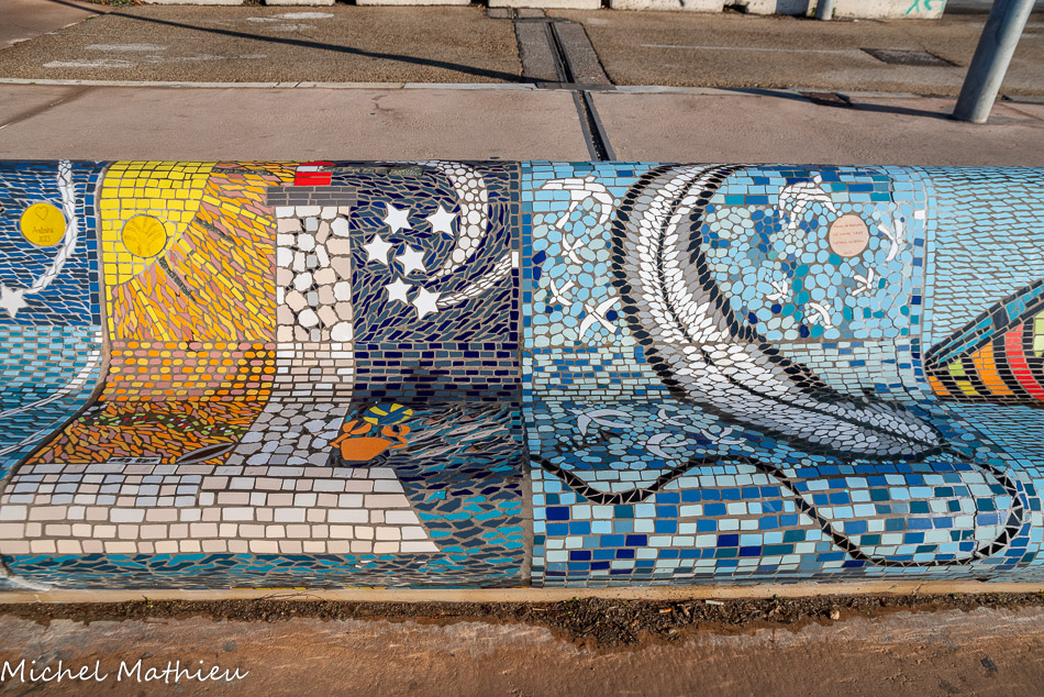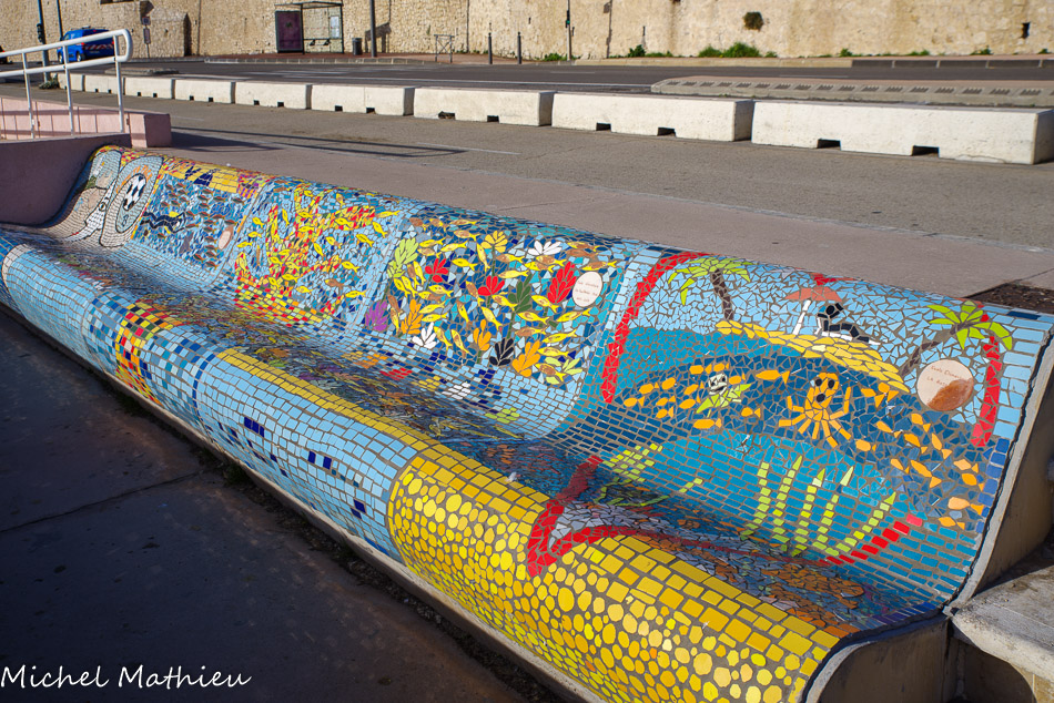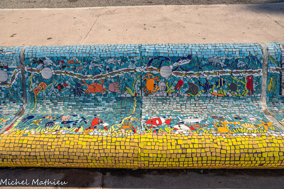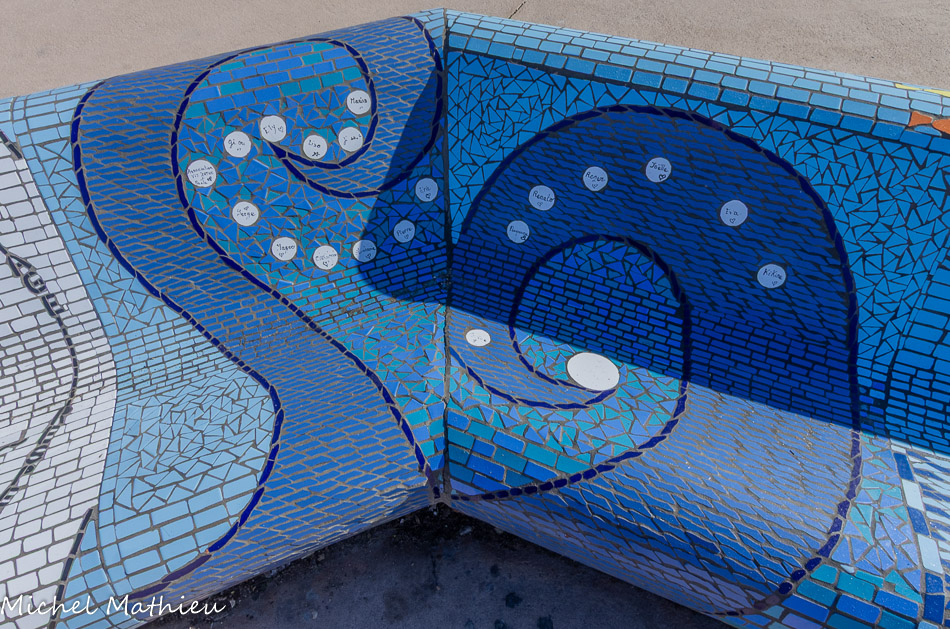 Bancs ULULE Ecole Maternelle Edouard Vaillant, Ecole National CP 13003. 2019. Les petits poissons portent les noms de élèves. AFTC 13, TC Club de Marseille, 2019.