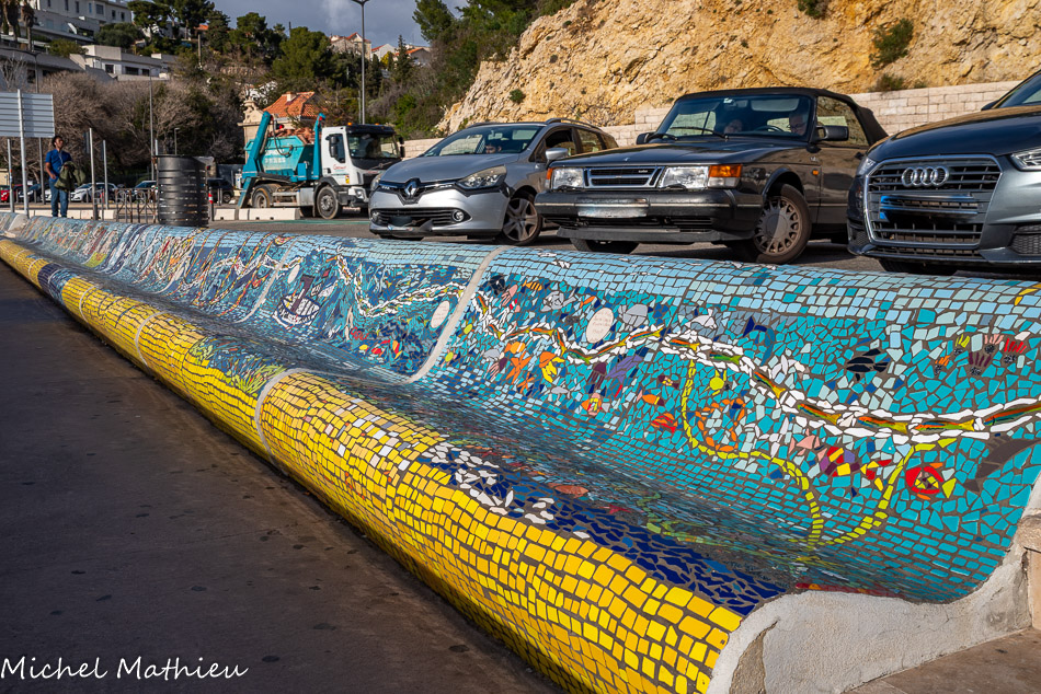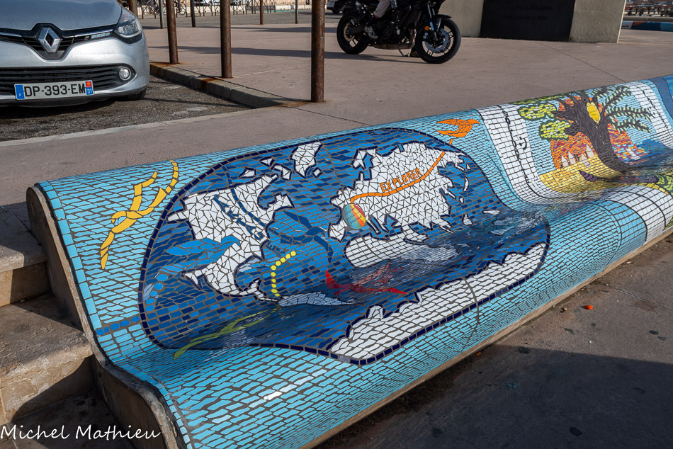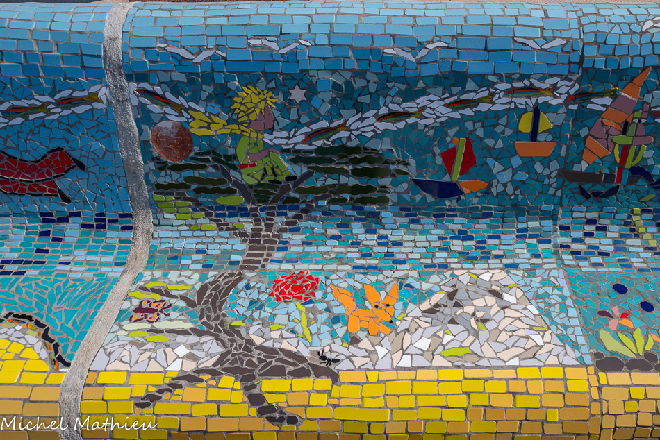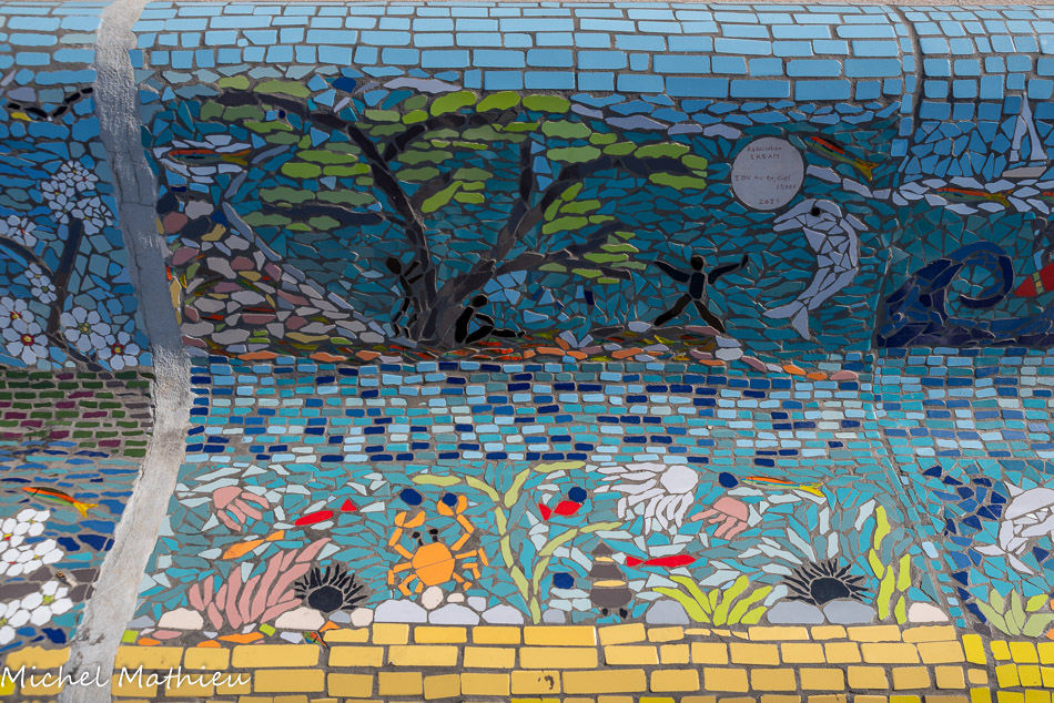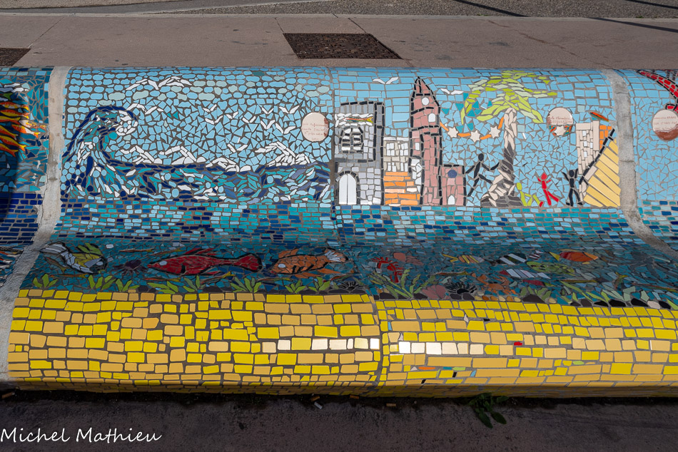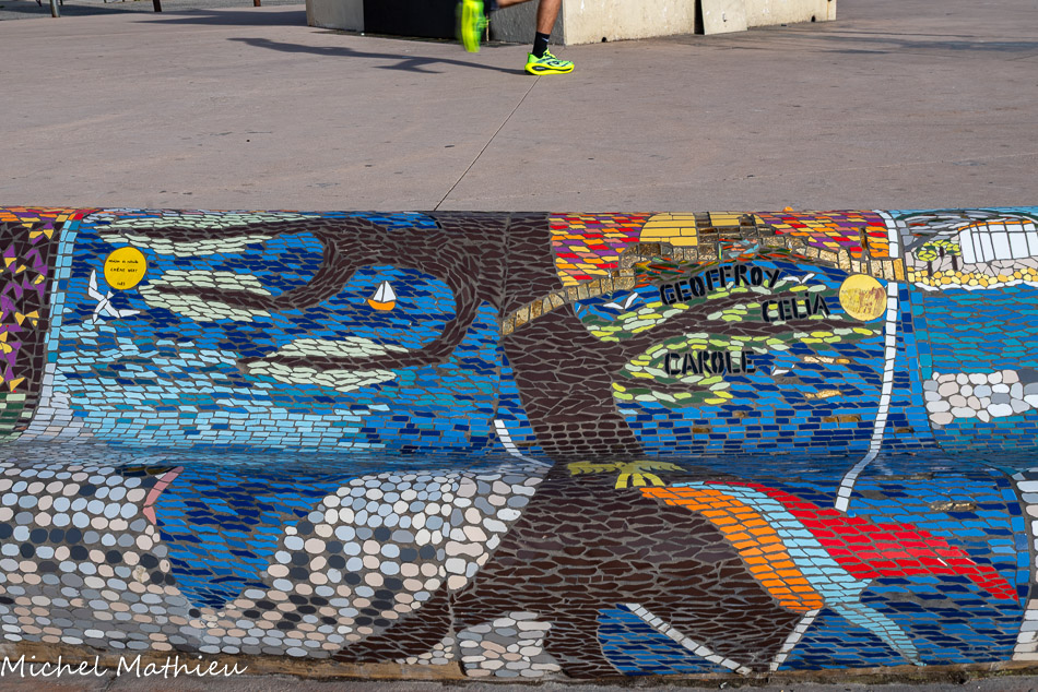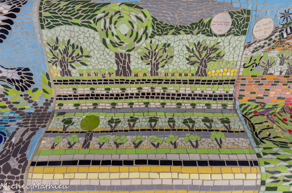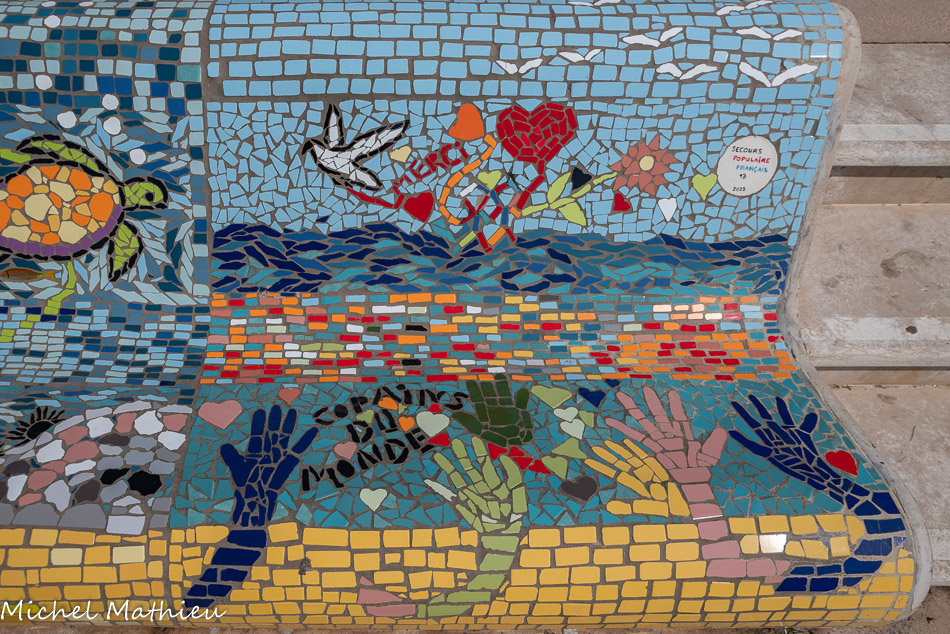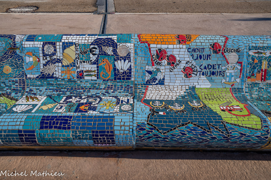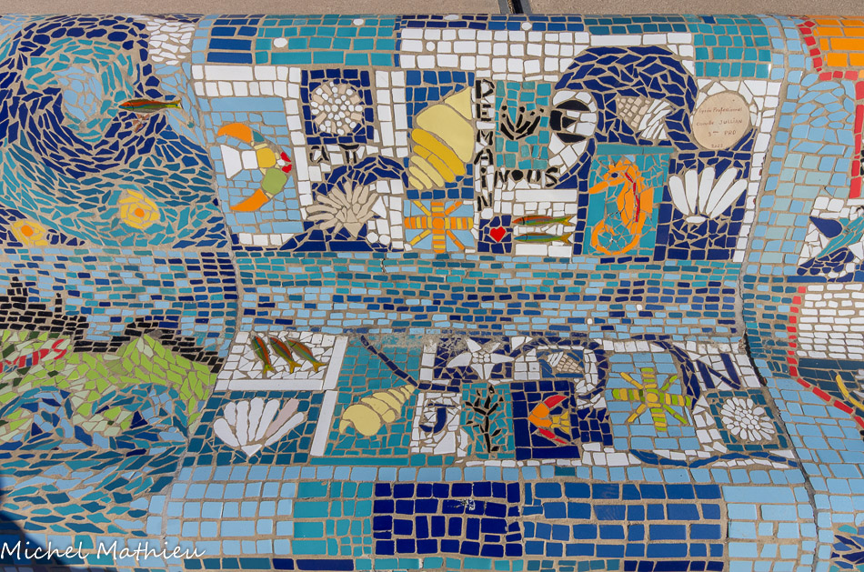 Bancs ULULE Ecole Maternelle Edouard Vaillant, Ecole National CP 13003. 2019. Les petits poissons portent les noms de élèves. AFTC 13, TC Club de Marseille, 2019.