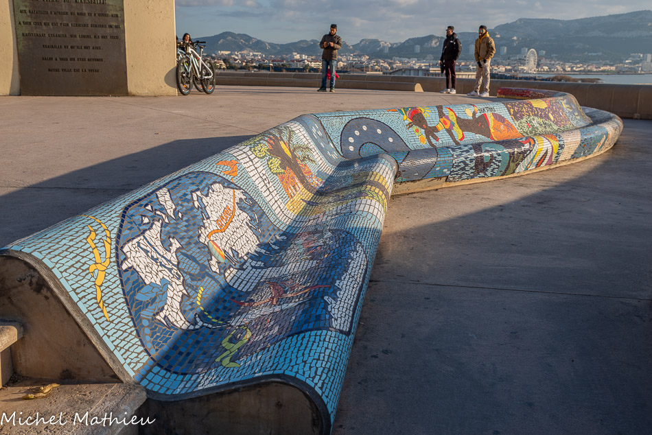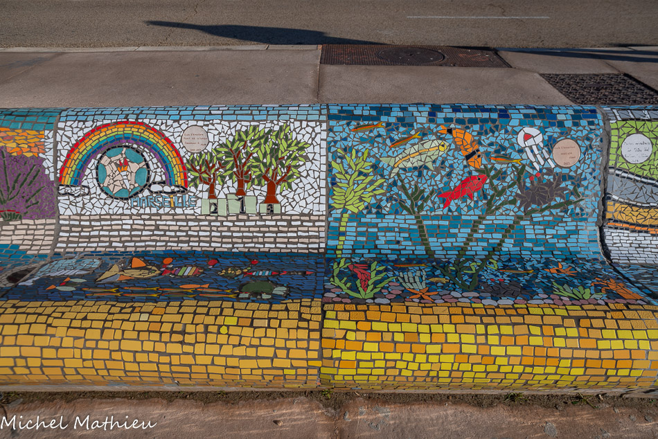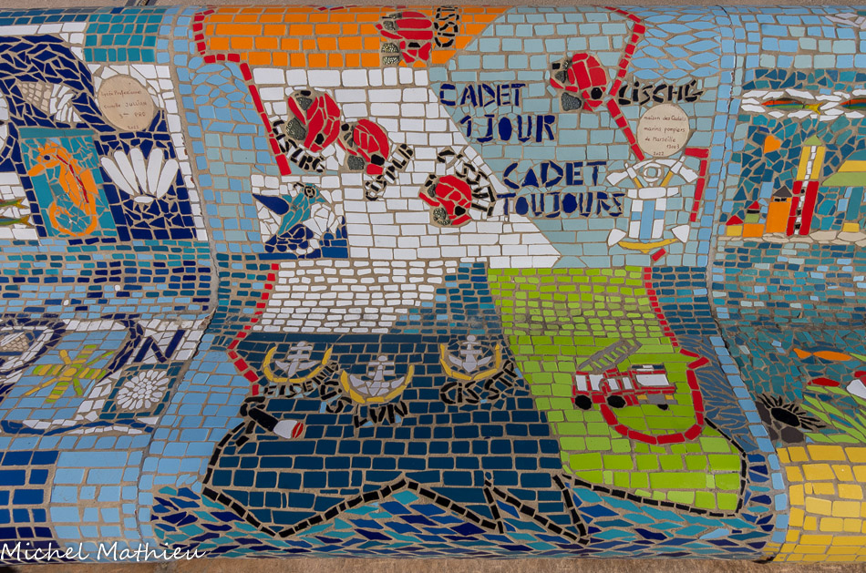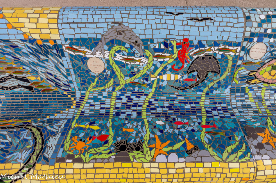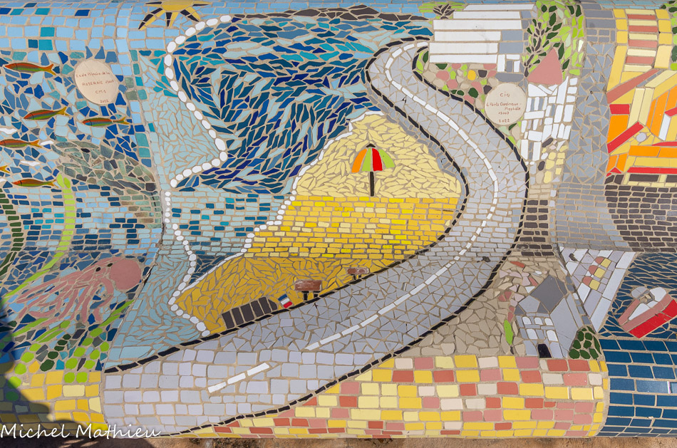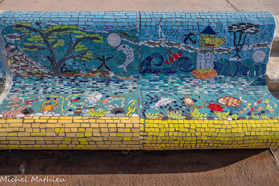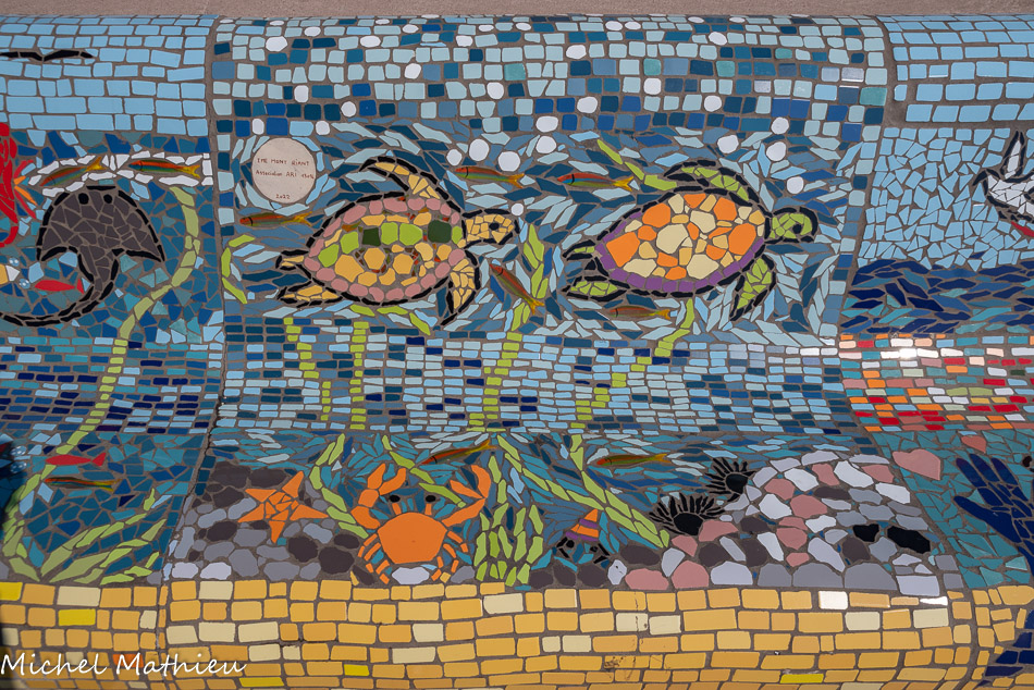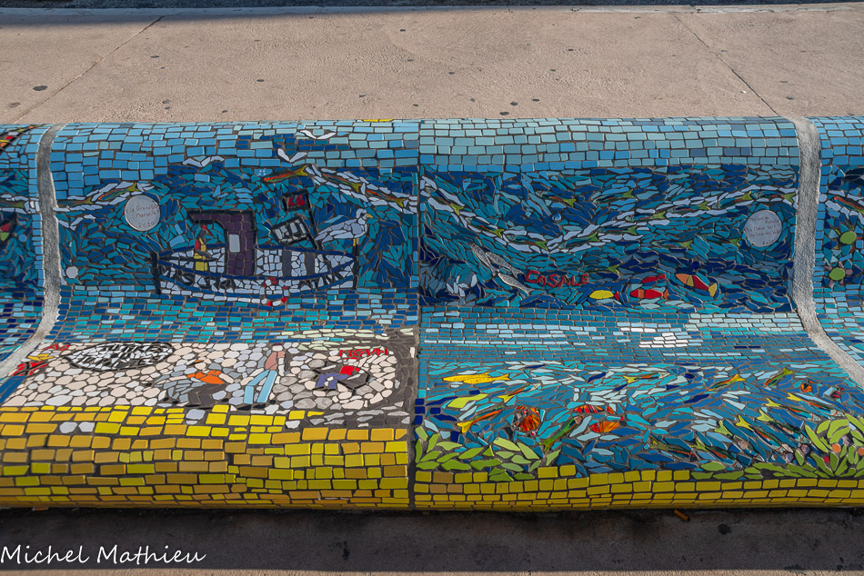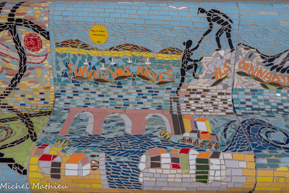 Bancs ULULE Ecole Maternelle Edouard Vaillant, Ecole National CP 13003. 2019. Les petits poissons portent les noms de élèves. AFTC 13, TC Club de Marseille, 2019.
