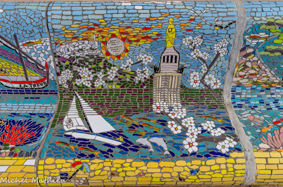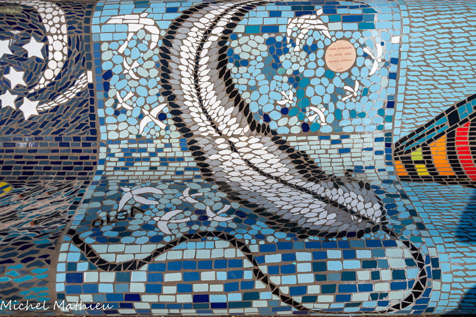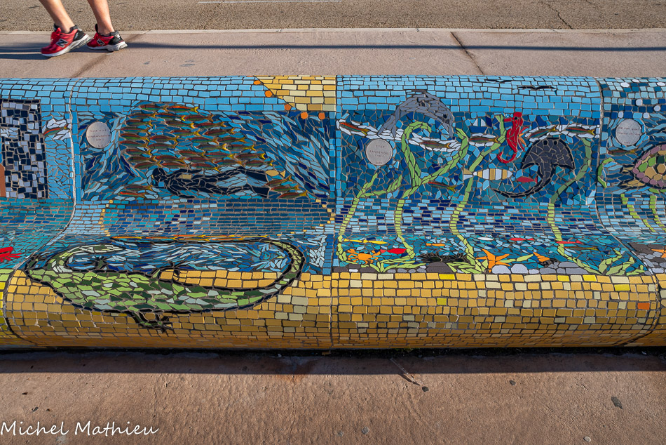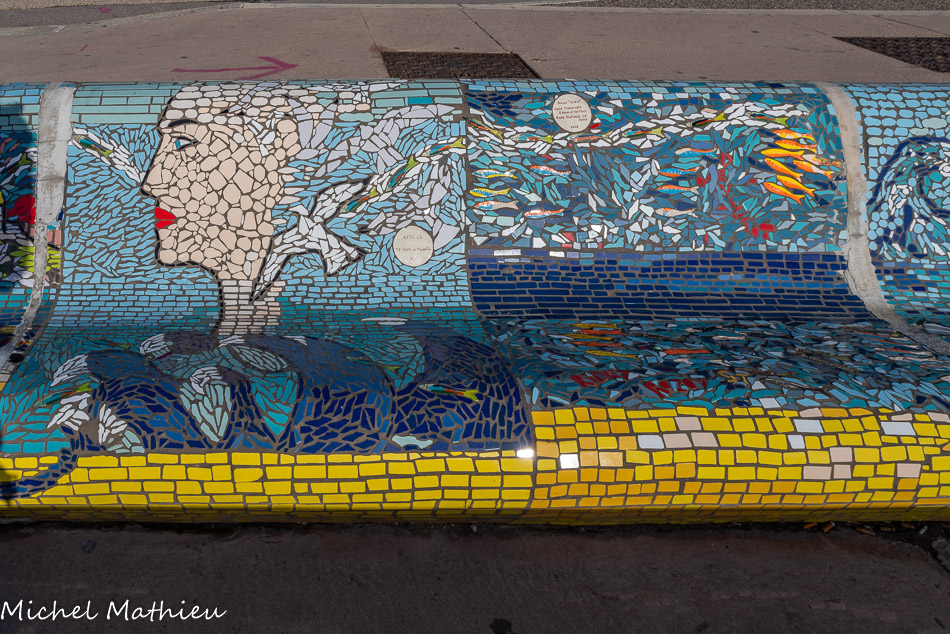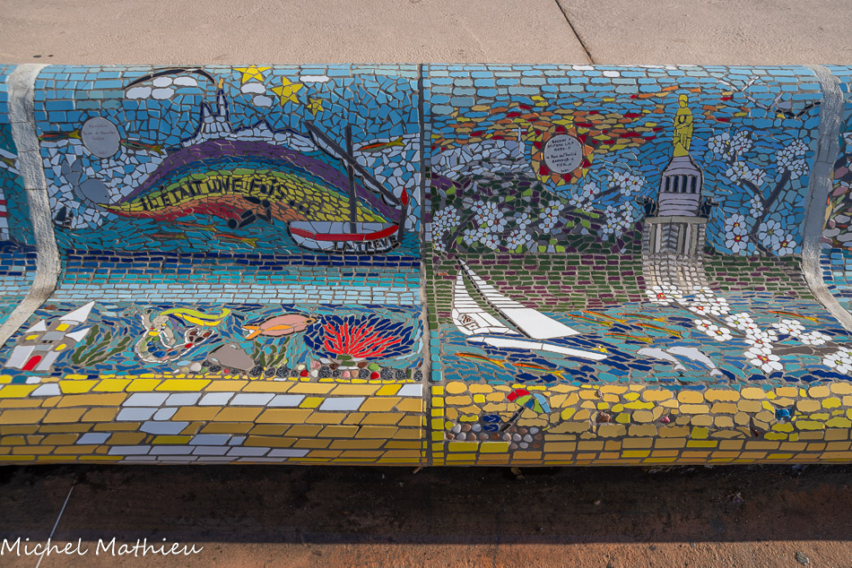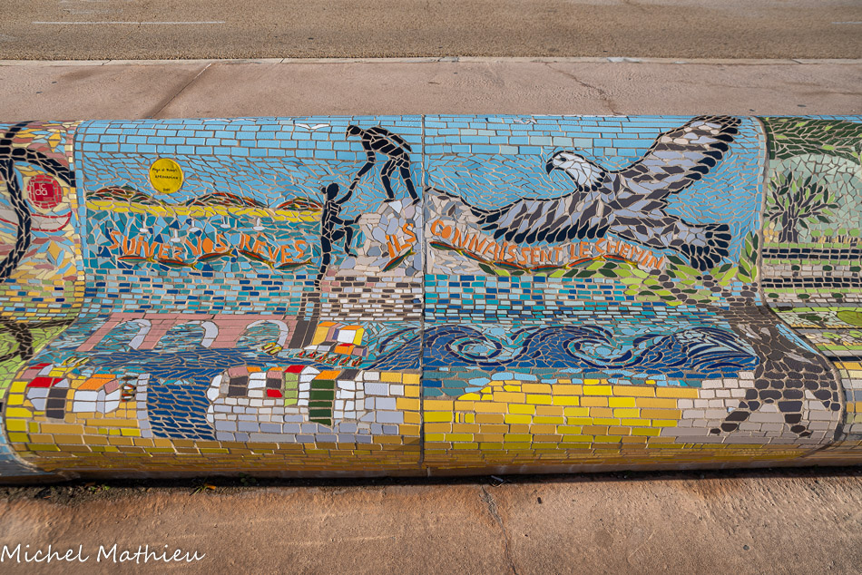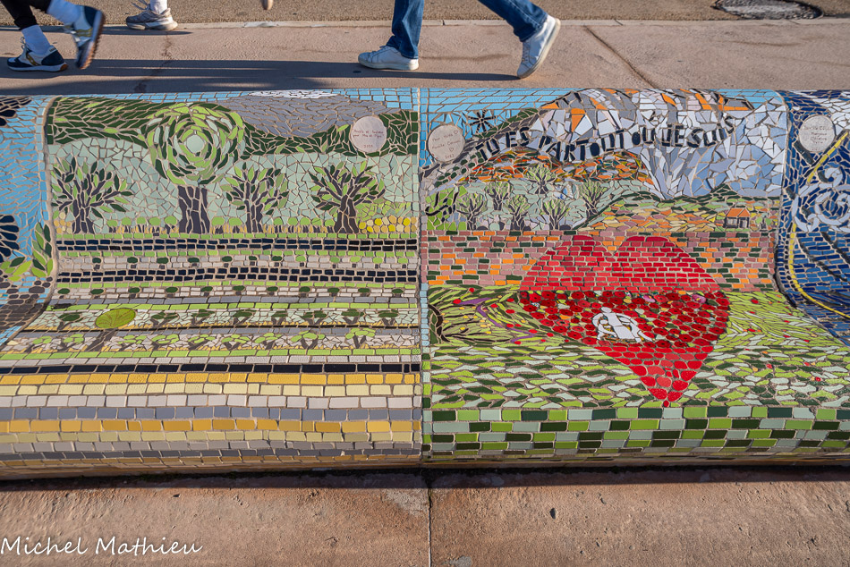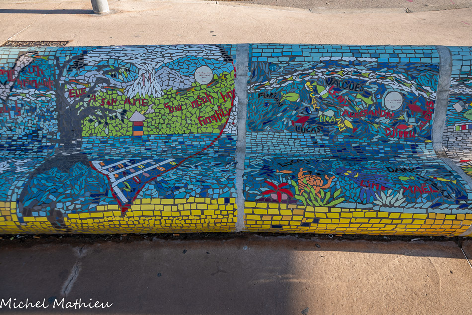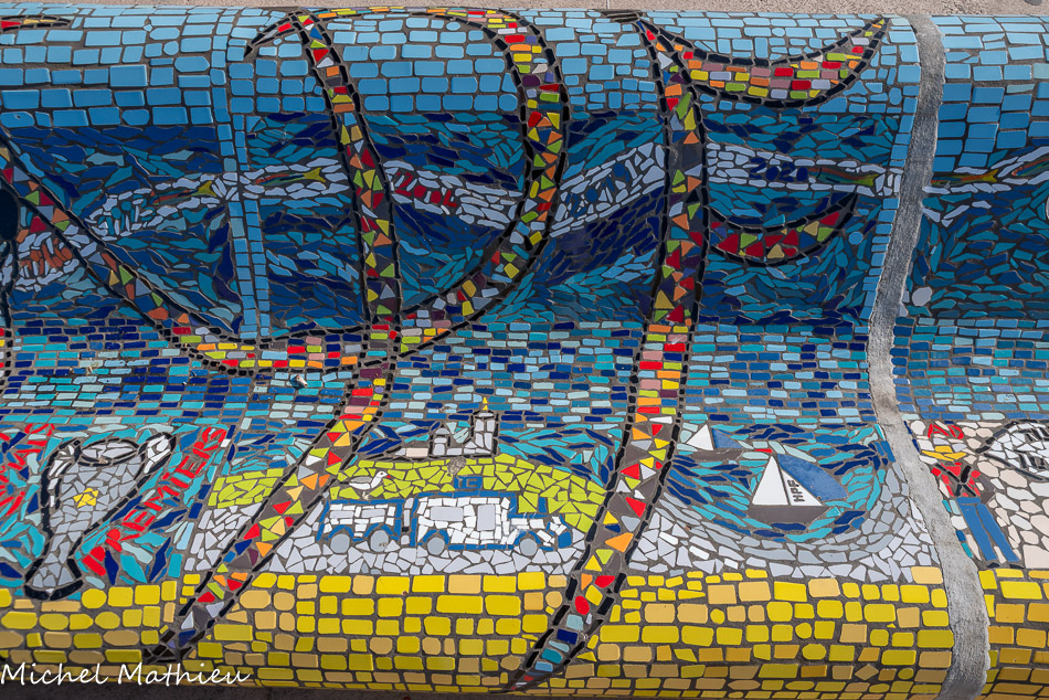 Bancs ULULE Ecole Maternelle Edouard Vaillant, Ecole National CP 13003. 2019. Les petits poissons portent les noms de élèves. AFTC 13, TC Club de Marseille, 2019.