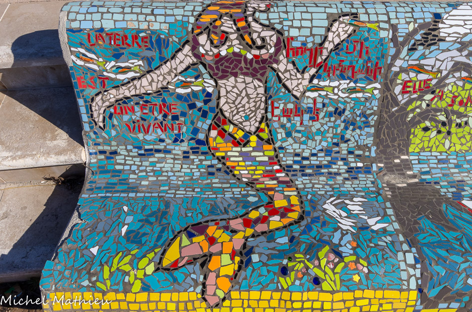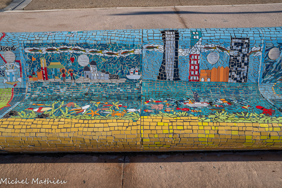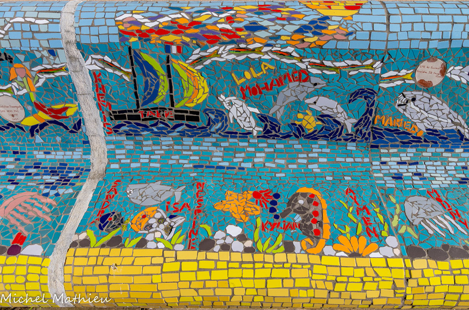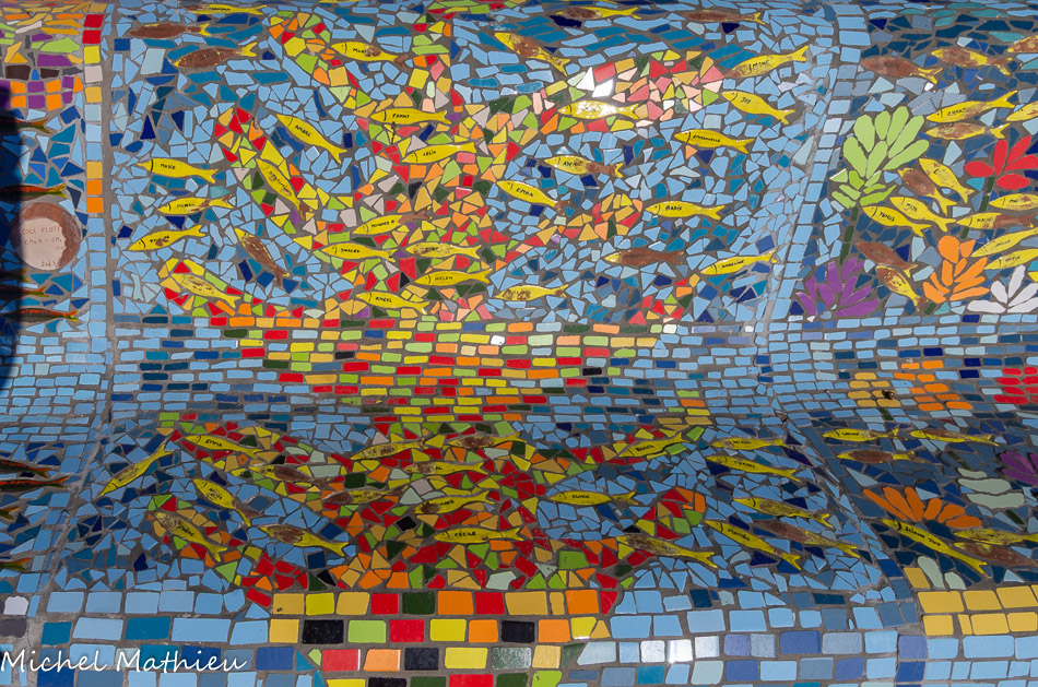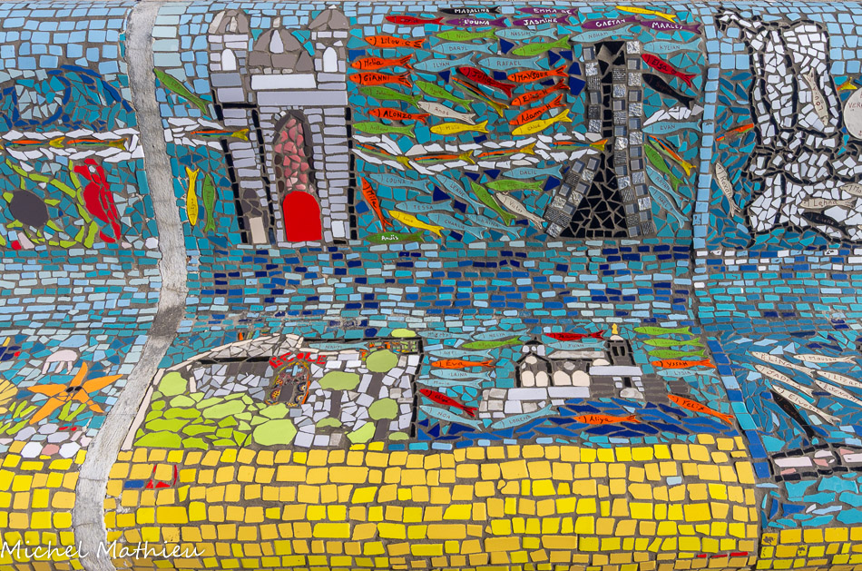 Bancs ULULE Ecole Maternelle Edouard Vaillant, Ecole National CP 13003. 2019. Les petits poissons portent les noms de élèves.
