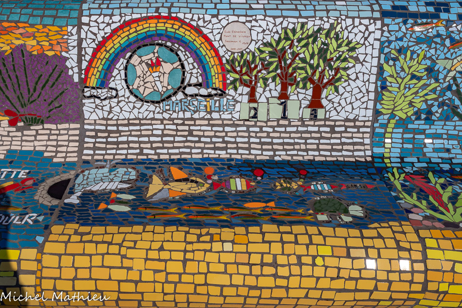 Ecole Verduron-haut, 13015, 2020. Les petits poissons portent les noms de élèves. Alhambra.