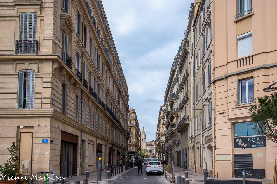 Cette rue Fiocca et les suivantes(Grand-Rue, rue Caisserie, rue Saint Laurent) empruntent le trajet de la plus ancienne rue de la ville qui reliait le port antique à la butte saint Laurent, en passant par le forum (niveau place de Lenche). On aperçoit le clocher des Accoules.