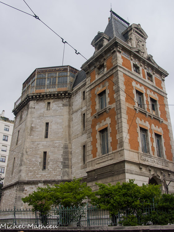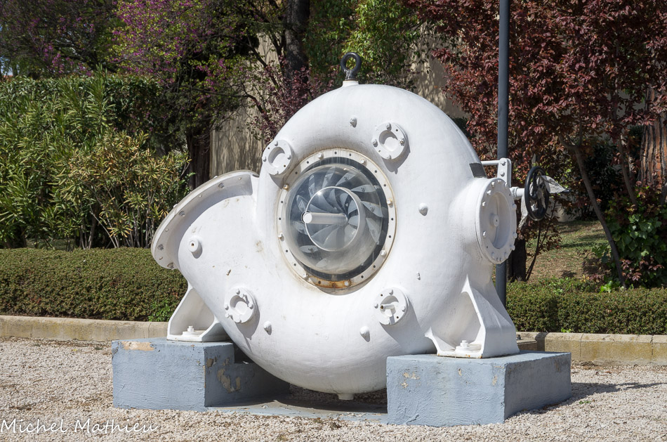 Machine élévatoire de Tour Sainte, 1900. Son principe de fonctionnement était d'utiliser la force hydraulique d'une grosse partie du débit afin d'en pomper une petite partie pour alimenter un quartier situé à une altitude supérieure à celle de l'usine.