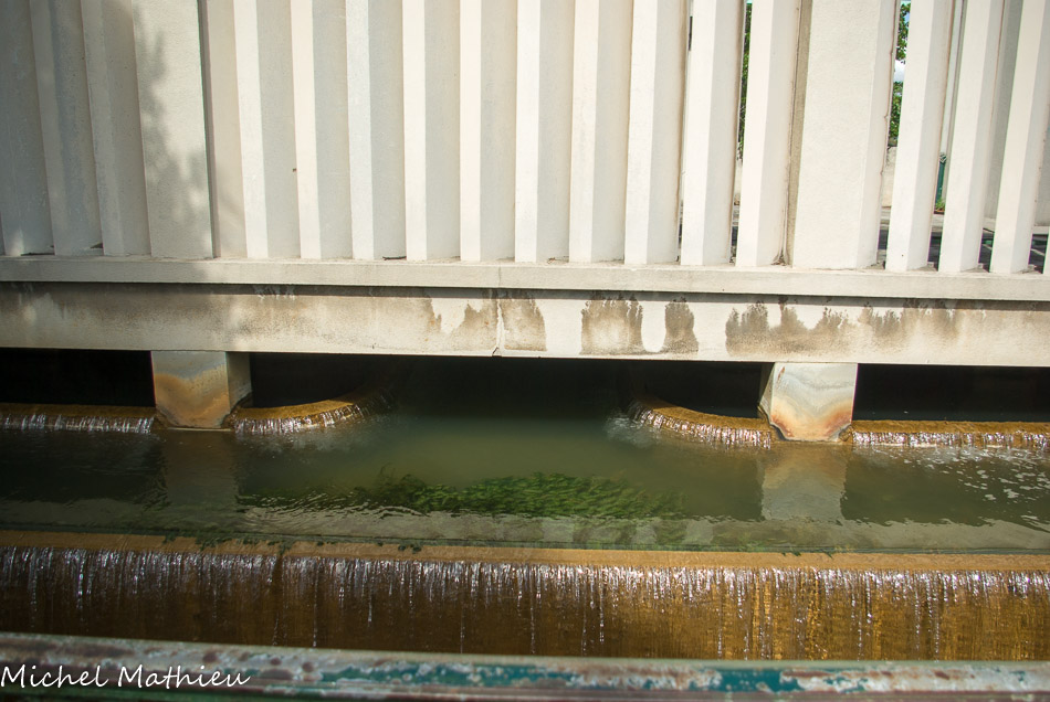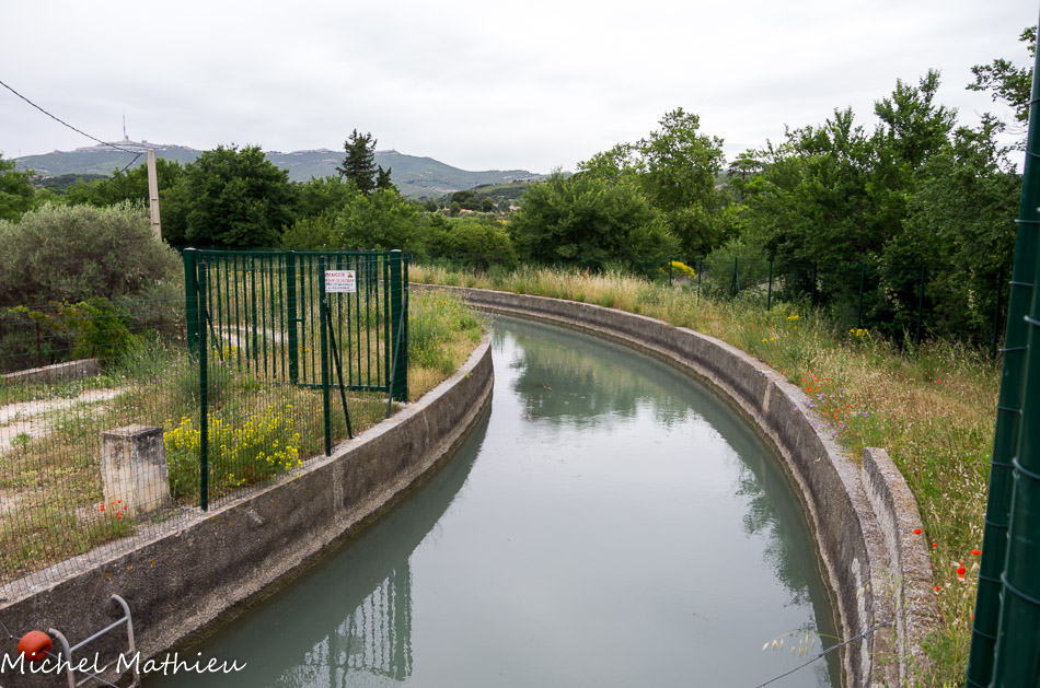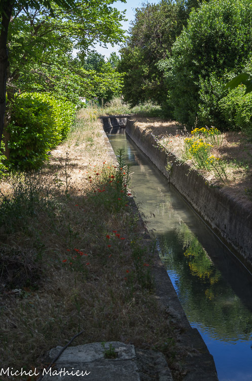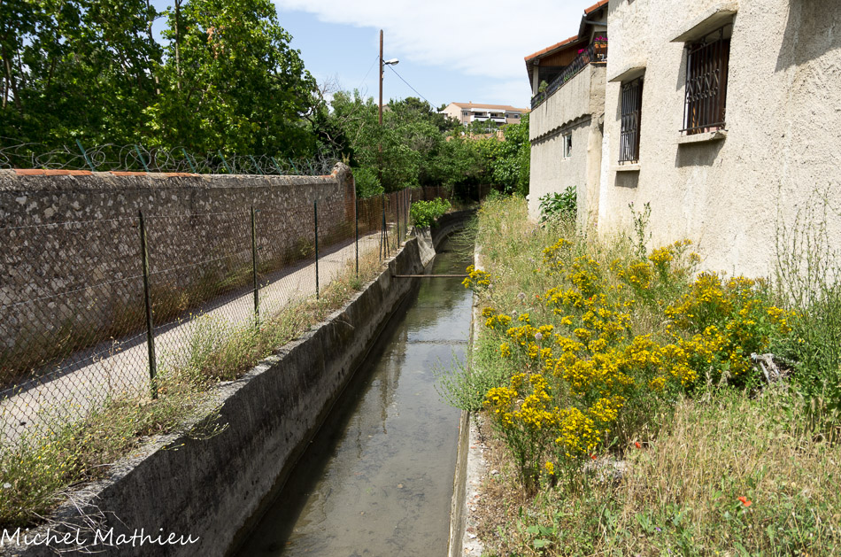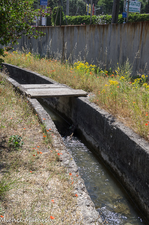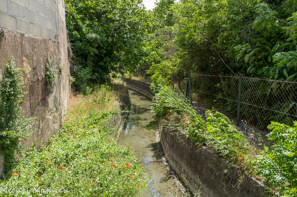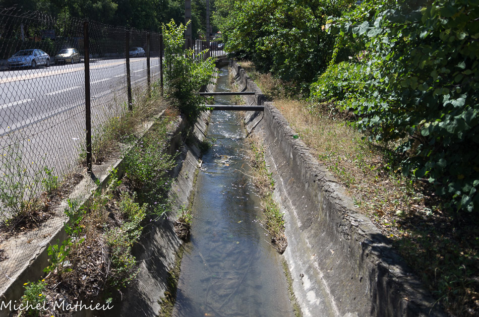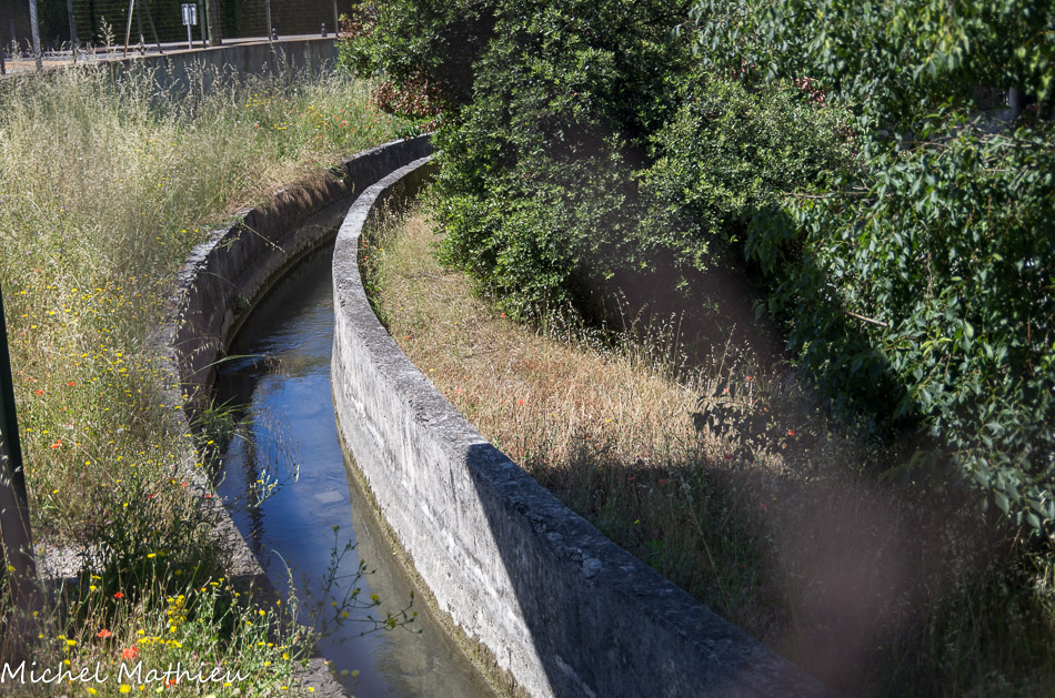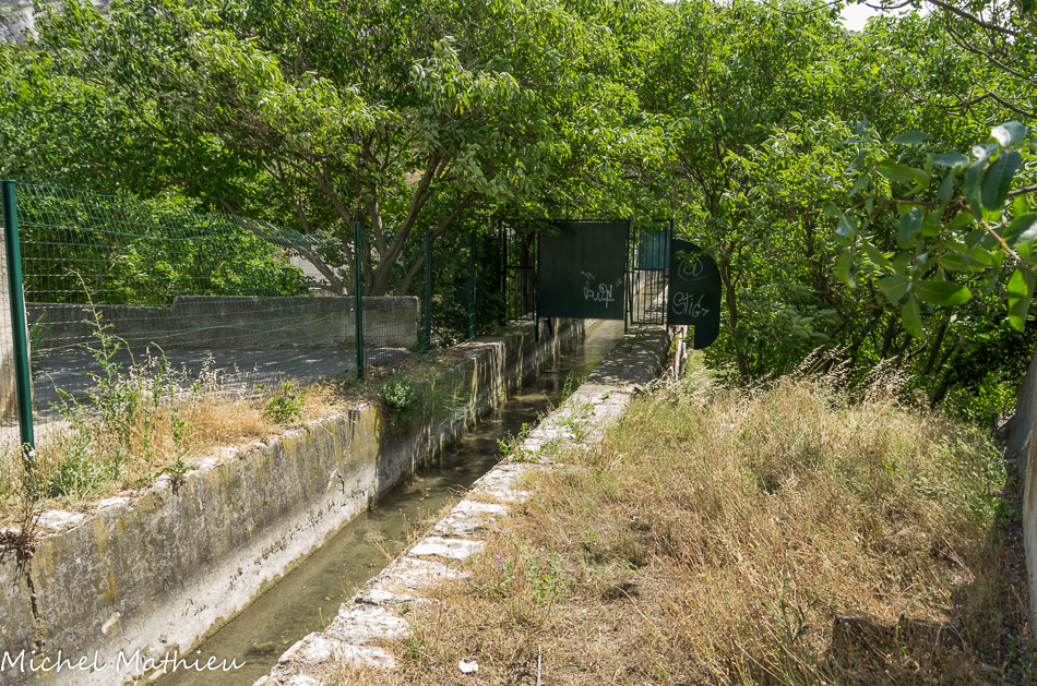 Le canal est tantôt à l'air libre, tantôt sous couvert de plaques en béton pour éviter les chutes de personnes.