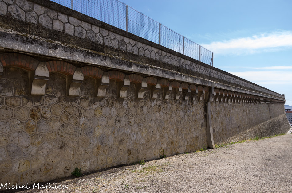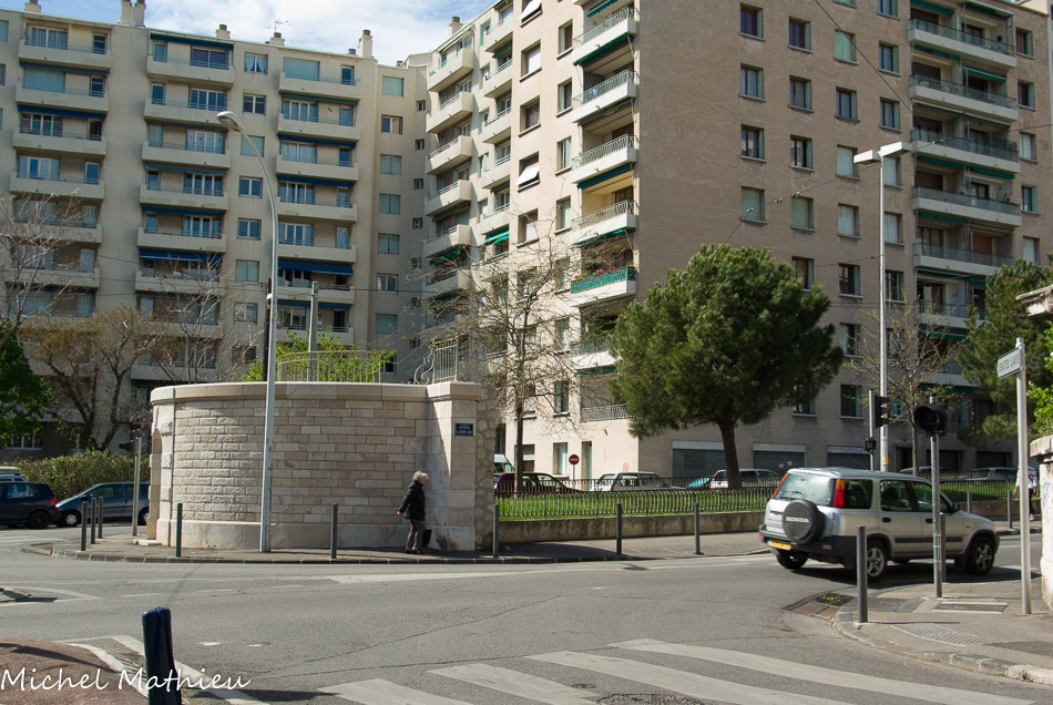 Sur la branche qui va vers les quartiers sud de Marseille, une canalisation au-dessus de l'Huveaune permet le franchissement de cette dernière.