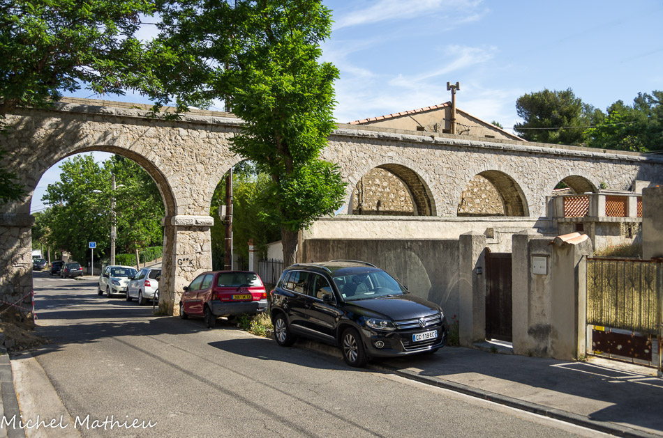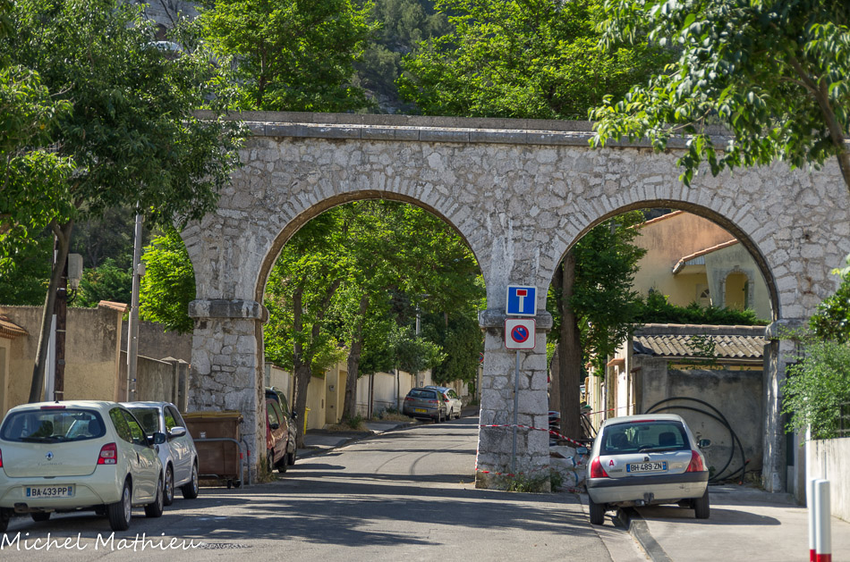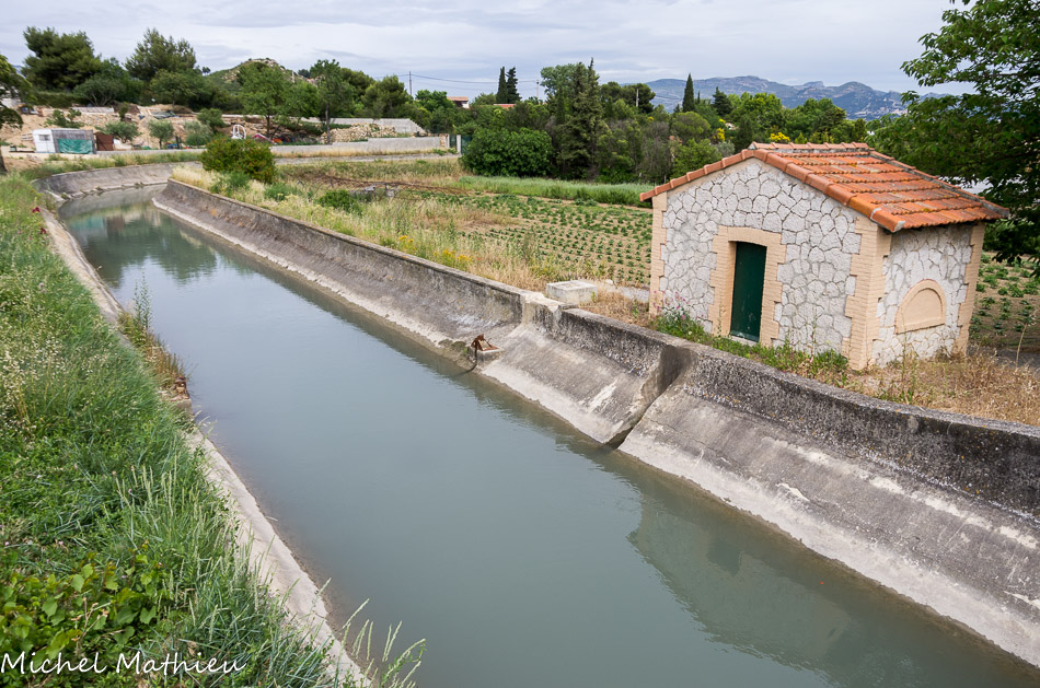 Sur la dérivation vers Aubagne, un aqueduc permet le franchissement de la Route Des 4 saisons. Ce magnifique pont aqueduc, composé de 7 arches de 8 m d’ouverture représente un ouvrage d’une hauteur de 18 m ainsi qu'une longueur de 82 m.