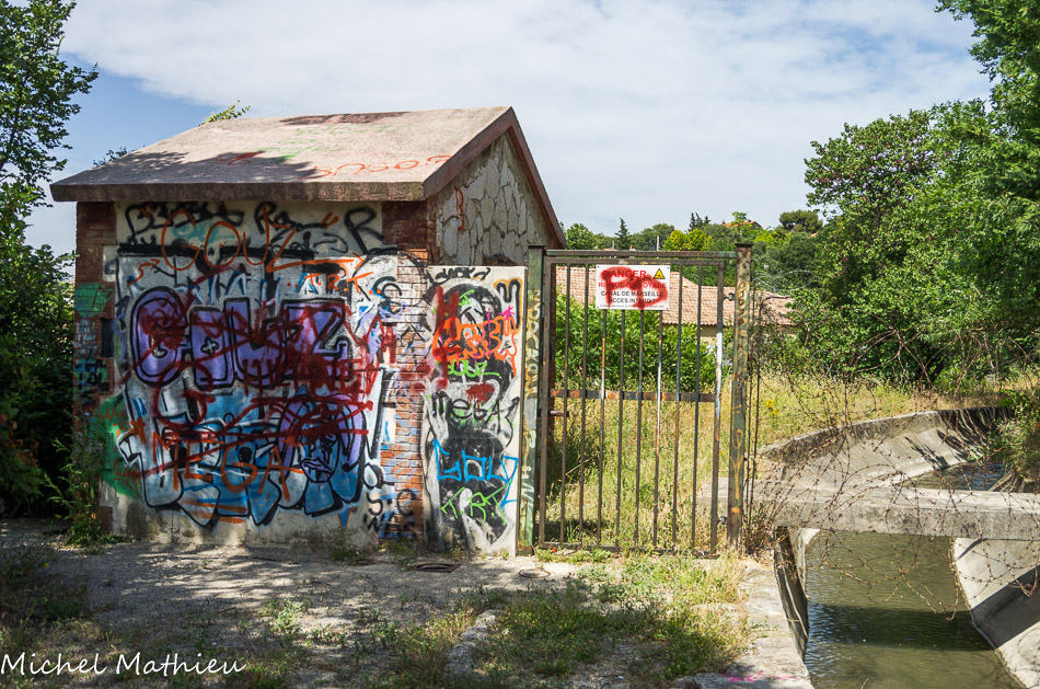Une cabane de cantonnier. Subsistent encore aujourd'hui quelques-uns des cabanons qui étaient implantés sur les berges du canal de Marseille, tous les deux ou 3 km. De forme carrée, avec une toiture à deux pentes, ils étaient réalisés en pierre de taille et en briques, avec une porte d'entrée en bois et deux fenêtres en demi-rond. Ils comportaient une ou deux pièces où l’on trouvait un lit et un coin cheminée. Le petit matériel était entreposé : clé de vanne, fourche, lampe à pétrole.