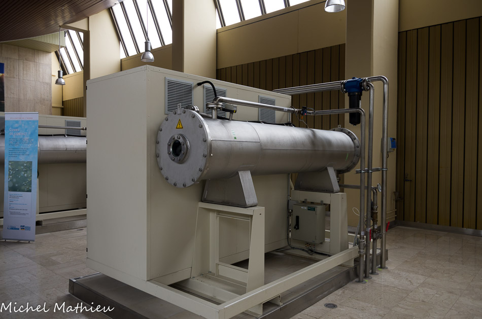 Un des trois ozoneurs. L’ozone est un oxydant puissant qui élimine virus et bactéries.De plus, il supprime les odeurs désagréables et n'altère pas le goût de l'eau, satisfaisant ainsi les consommateurs d’eau potable.