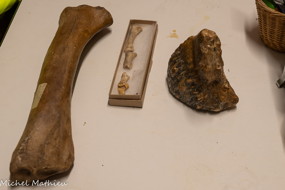 Un os de cheval, des os d'une phalange d'ours des cavernes, une molaire de mammouth.
