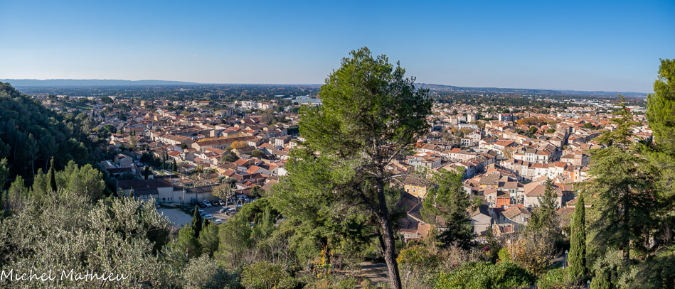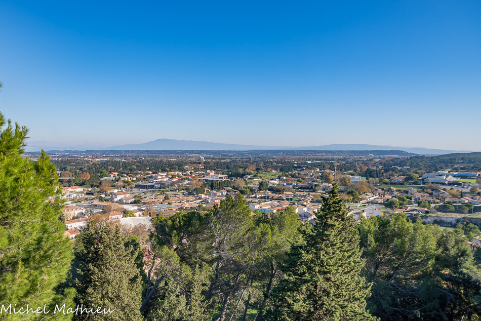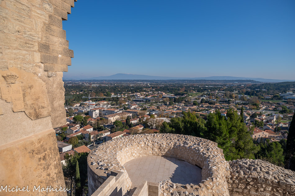 Le parc du château offre un point de vue sur le Mont Ventoux, les Alpilles et sur les plaines de la Durance et du Rhône. Au fond, la Montagnette.