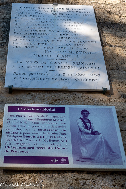 Moi, Nerte, suis née de l’imagination du poète provençal Frédéric Mistral (1930-1914). Mon innocence me donne seule le pouvoir de descendre en enfer par le souterrain du château, pour sauver le dernier Pape d’Avignon Benoit XIII (1394-1723. En effet, le 12 Mars 1403, Benoît XIII fuit Avignon et se réfugie à Châteaurenard terre du Comte de Provence.