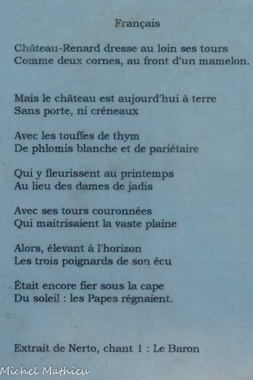 Les troubadours passèrent par Châteaurenard, et l'un d'eux composa un poème que l'on fit graver sur une pierre.