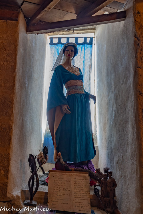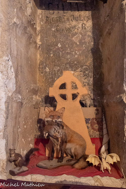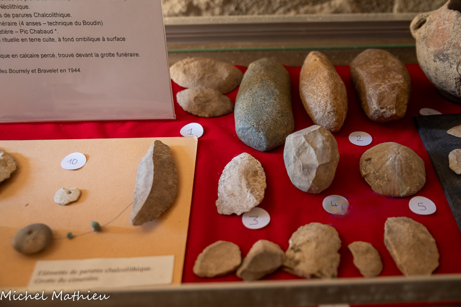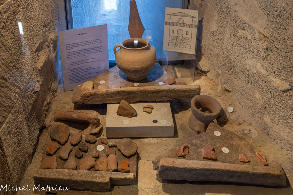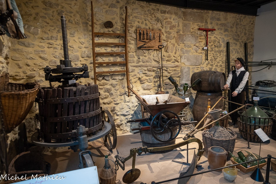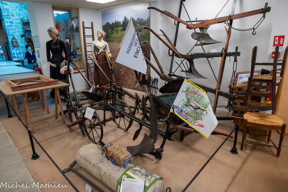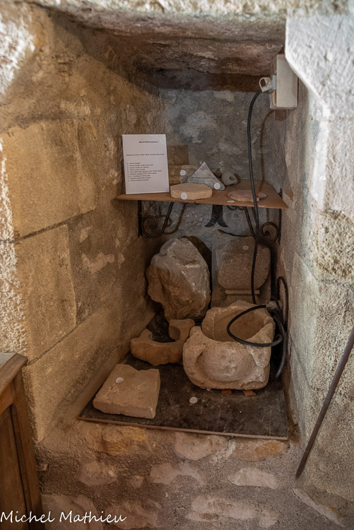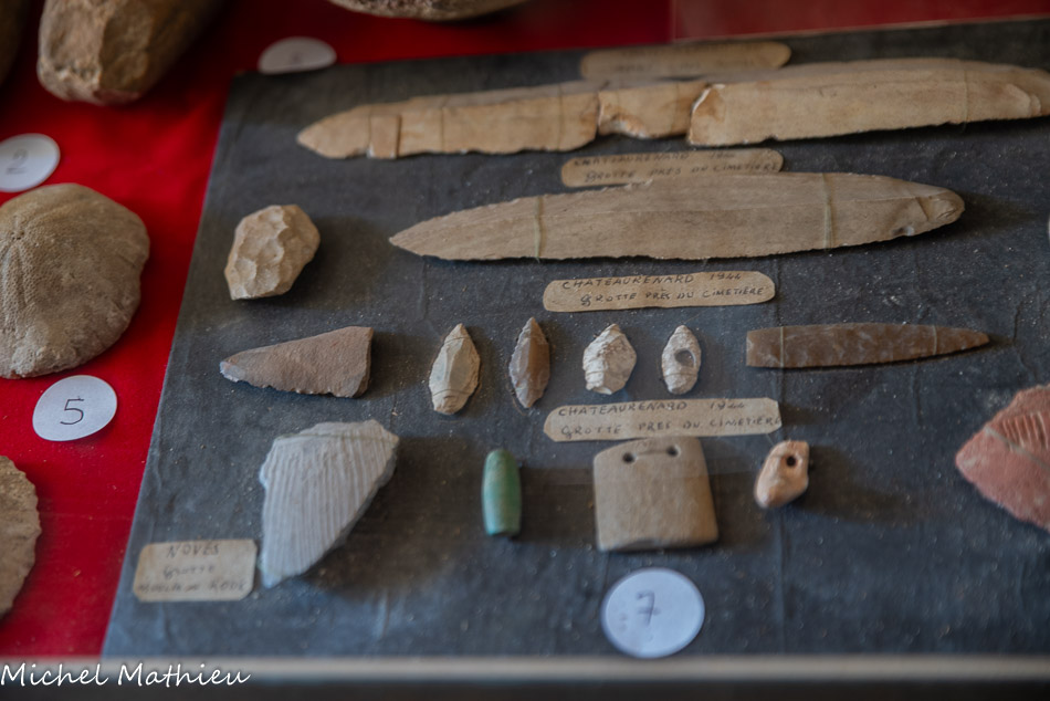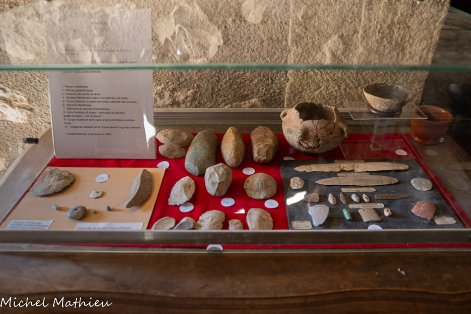 L’abri préhistorique. Il y a environ 4000 ans vivaient dans ces zones de collines et de marécages des populations de la fin du Néolithique. Ces agriculteurs et éleveurs disposaient d’abris provisoires. Ils exploitaient des nodules de silex cérébroïdes que l’on trouve dans la roche calcaire. On faisait des lames, des racloirs, des pointes de flèches dans cet abri reconstitué. Il est situé près d’une source et protégé du vent. Notons que ce lieu est éclairé et réchauffé par la lumière du jour naissant, symbole de vie.