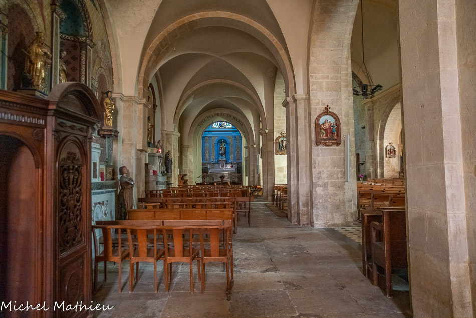 Elle cache derrière sa façade XIXème, une grande nef romane ainsi qu'un beau chœur gothique. Au milieu du XIVème siècle, l’ancien chœur roman fut remplacé par un chœur gothique. Entre 1832 et 1848, d’importants travaux d’agrandissement furent menés. On construisit alors les nefs latérales.