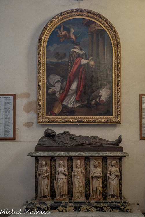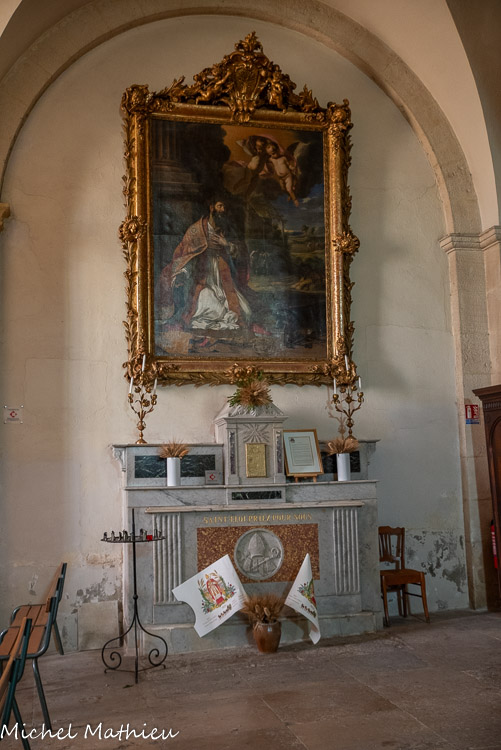 Toile de Nicolas Mignard. Saint-Eloi et le miracle du pied de cheval coupé, (1656) qui trône au-dessus de l’autel dédié à saint Eloi.