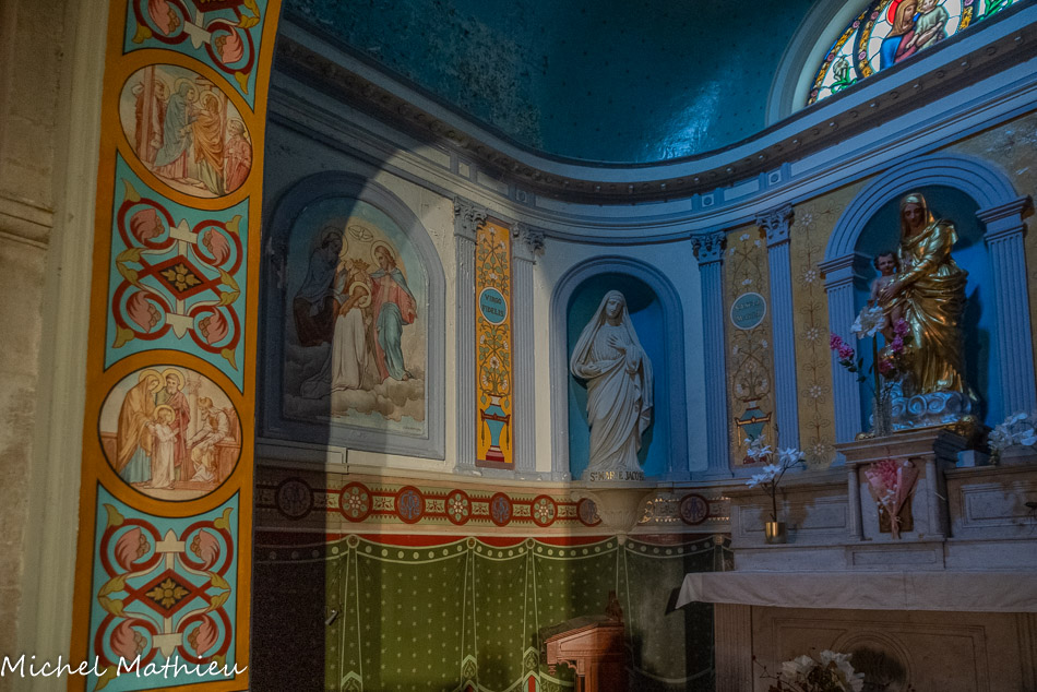 A droite du chœur, un autel a été érigé, tel un formidable ex-voto qui retrace le message de la Belle Dame de la Salette, en remerciement de la guérison miraculeuse qui rendit à Thérèse Nicolas, paroissienne de Châteaurenard, le 8 septembre 1873, l’usage de ses jambes paralysées. La rocaille représentant la montagne de la Salette a été réalisée en pierres de quartz, malheureusement ternies par la fumée et la poussière.