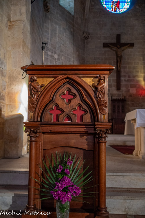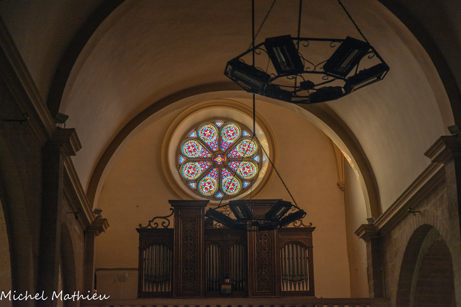 Dans le fond de l'église sur le balcon trône un magnifique orgue ayant appartenu aux frères Lumière. Sur les piliers qui soutiennent l’édifice, on peut suivre les quatorze stations d’un chemin de croix de style sulpicien qui a été restauré à la fin du siècle dernier sous l’impulsion du Père Thierry GALLAY.