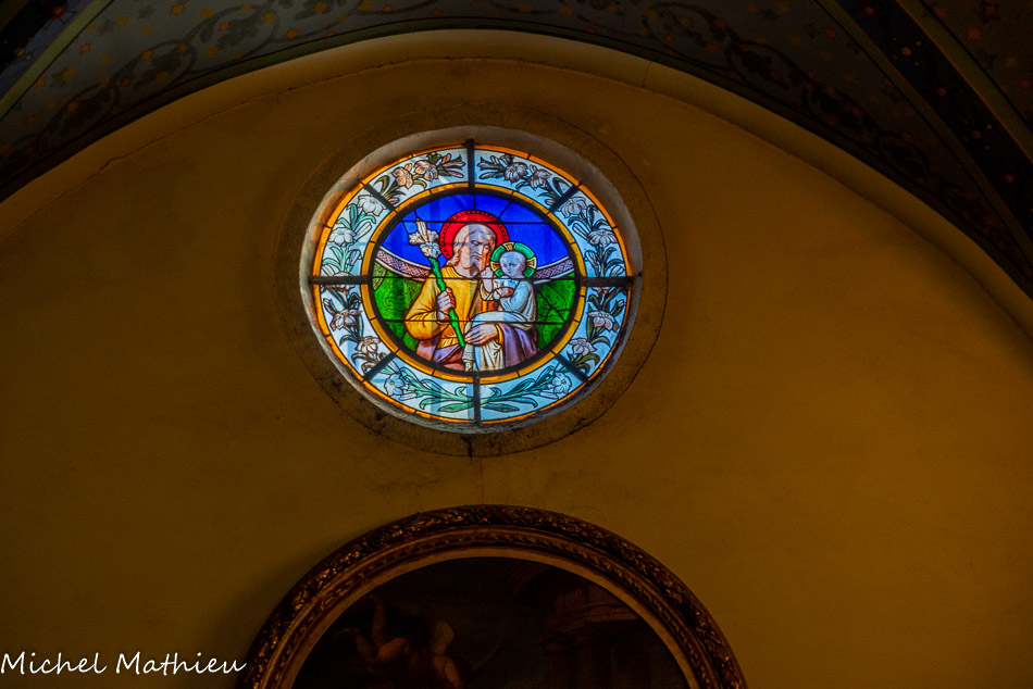 Normalement on peut y voir aussi «la Vierge présentant l’Enfant Jésus à saint Antoine de Padoue en présence de saint François», saint Joseph au premier plan, contemplant la scène, un genou en terre (1645). En restauration. Huile sur toile de Nicolas Mignard, 1656.
