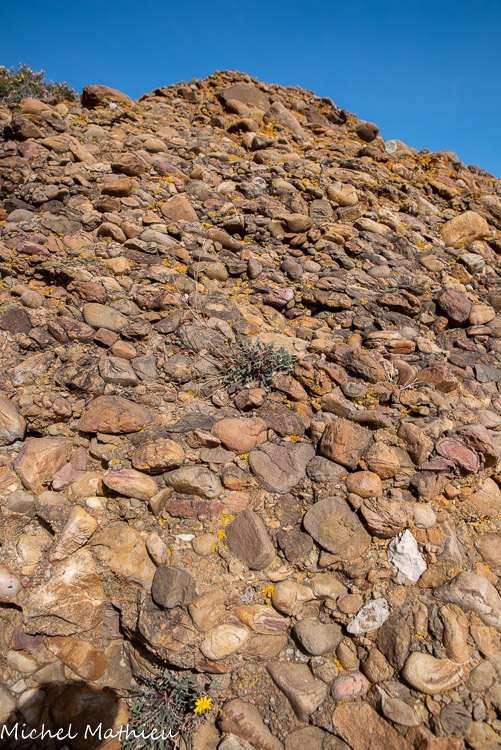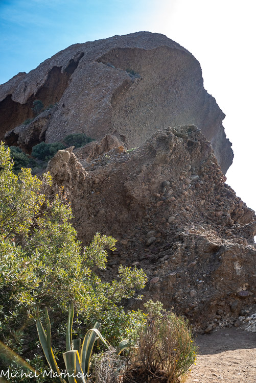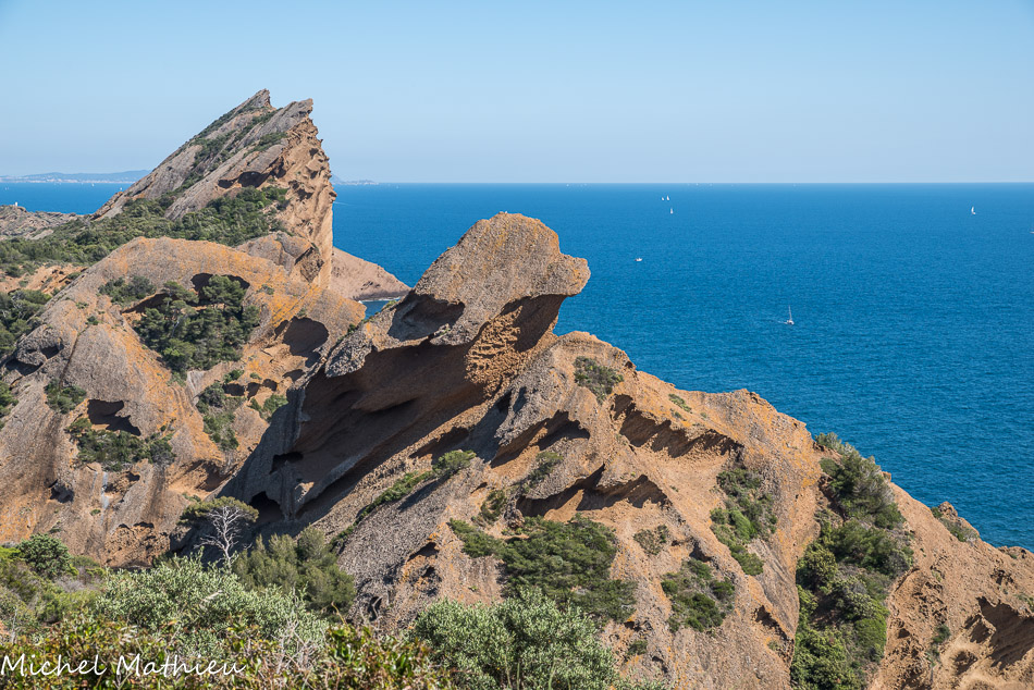 Le poudingue est ici un assemblage de galets arrondis composés de quartz, de grès, de schiste, de granite ou de calcaire, le tout cimenté naturellement. Outre l’attrait esthétique de cette curiosité géologique, le sol siliceux et acide voit l’existence d’une végétation silicicole bien différente (châtaignier, lavande stoechas, ciste, palmier nain…) de celle des calanques calcaires toutes proches (chêne kermès, myrte, romarin, pin maritime…). On a donc un paysage de maquis et pas de garrigue des sols calcaires.