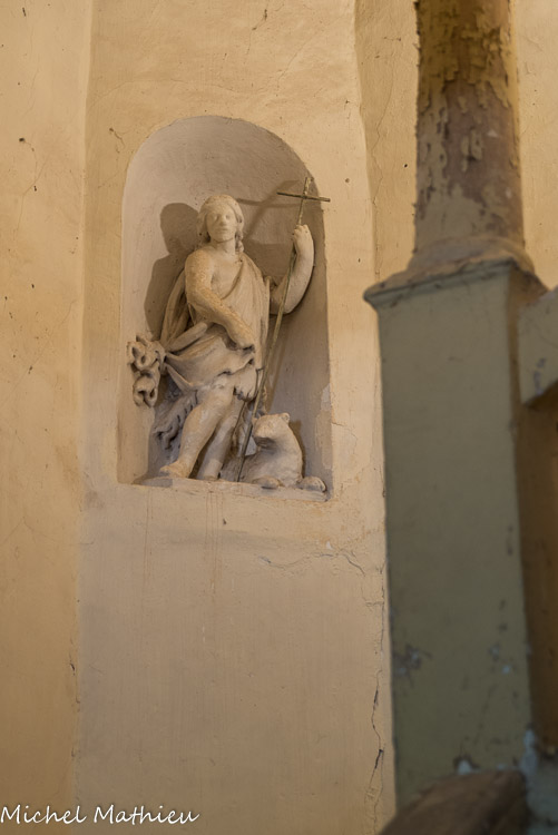 Les statuettes dans leur niche murale des saints Jean-Baptiste et Roch, protecteur contre la peste. Il y a 4 portes dans ce hall.