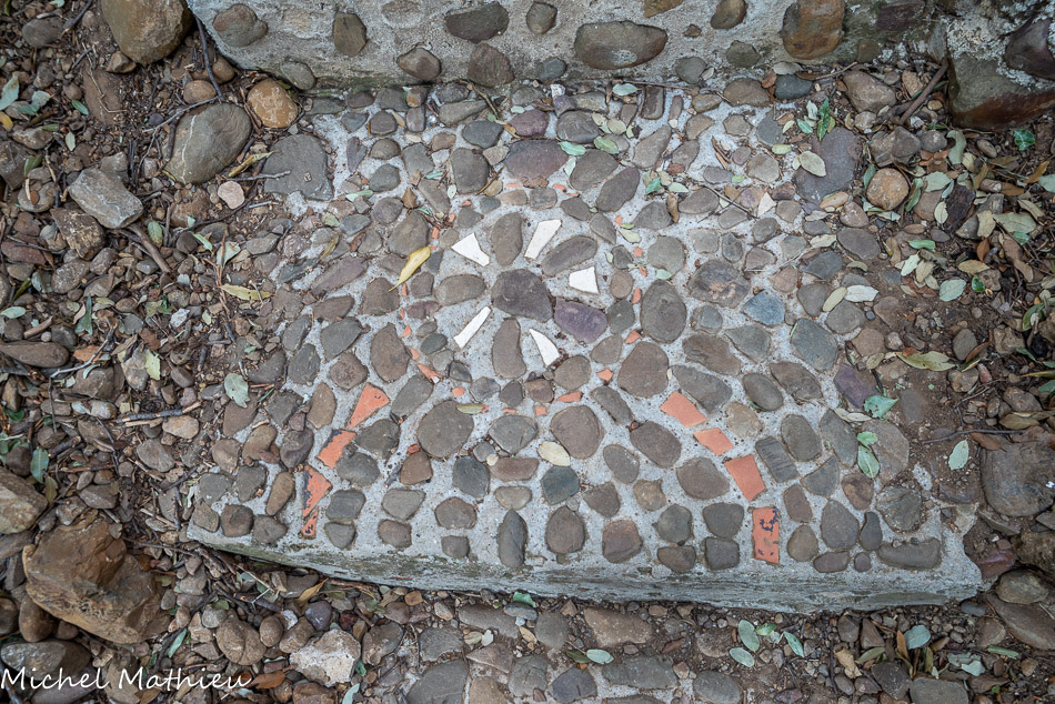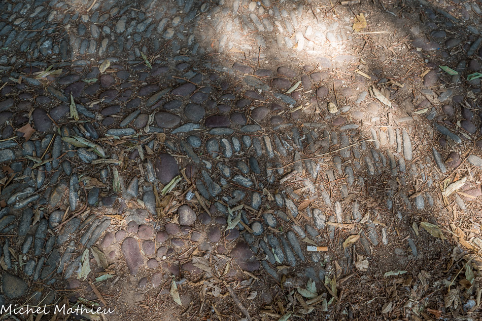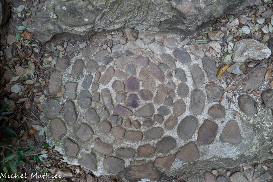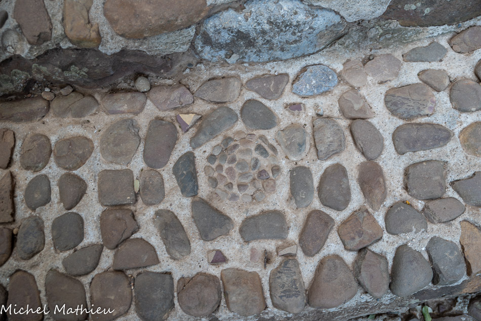La calade au décor géométrique, assez caractéristique des premières années du 19ème siècle (composition de grands panneaux et de bordures à motifs losangés).
