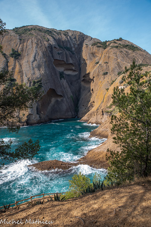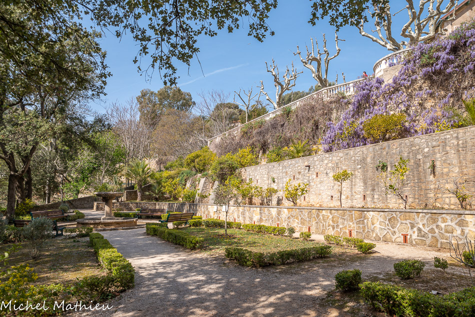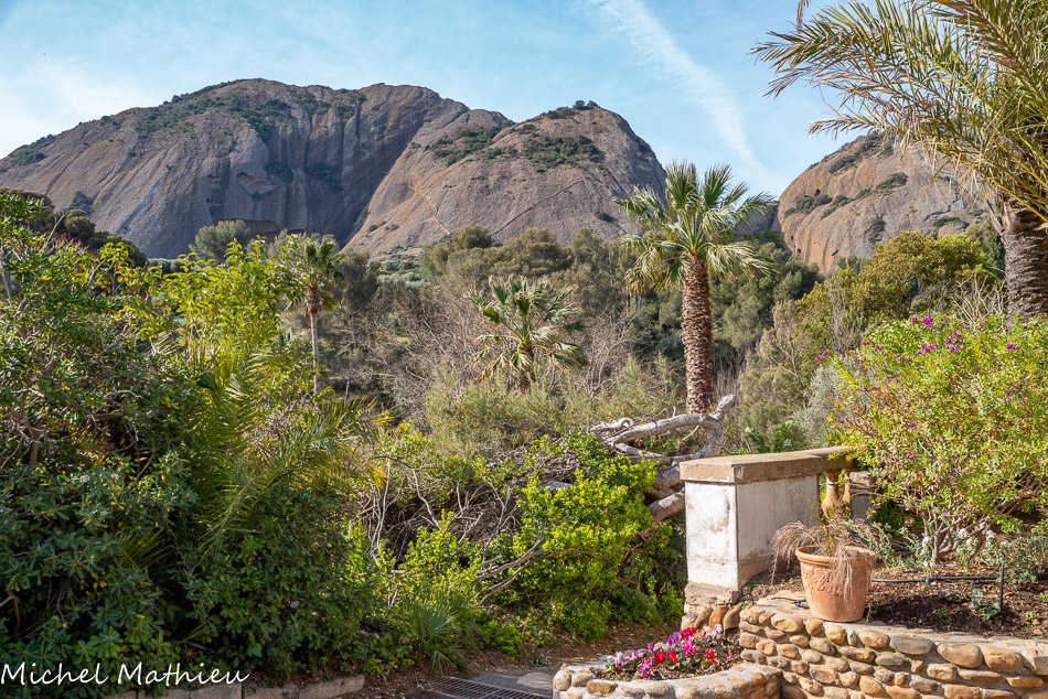 Dure et imperméable, elle constitue un véritable impluvium. Elle a permis la construction des calades qui récupèrent les eaux de pluie et les acheminent vers de profonds bassins. Grâce à cette eau, une prodigieuse et luxuriante végétation prospère. A l’origine de ce jardin, il y eut Louis Fouquet qui acquit cette propriété, en 1923, pour l’aménager en résidence secondaire. Ce paradis qu’il nous a légué bénéfice d’une situation exceptionnelle : le site est protégé du Mistral par le rocher du Bec de l’Aigle et réchauffé par la Méditerranée en hiver. L’inattendu est omniprésent : oiseaux de paradis, palmiers ou cactus constituent un mariage étonnant parmi les bambous, les châtaigniers ou encore quelques chênes lièges. De même, après une bonne marche, il est divin de profiter d’un panorama à 82 mètres à pic au-dessus de la mer. Le spectacle est grandiose et garanti. Le parc du Mugel s’étend sur environ 3 hectares. Il a été restauré pour votre plus grand plaisir. Restez sur les chemins balisés, il en va de la survie de ce site classé. Protégez ce patrimoine naturel et paysager, il est le joyau botanique de tous les ciotadens.