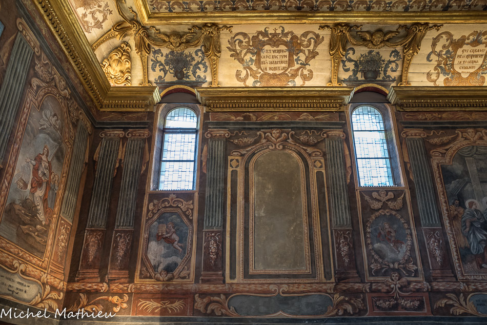 La décoration va être transformée au début du XVIIIe siècle. En 1754 sont achevées des fresques monumentales illustrant le cycle de la vie de la Vierge et du Christ. Elles sont signées Blaye père et fils, comme l'atteste l'inscription du mur ouest.