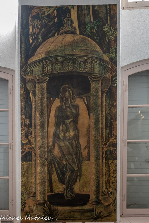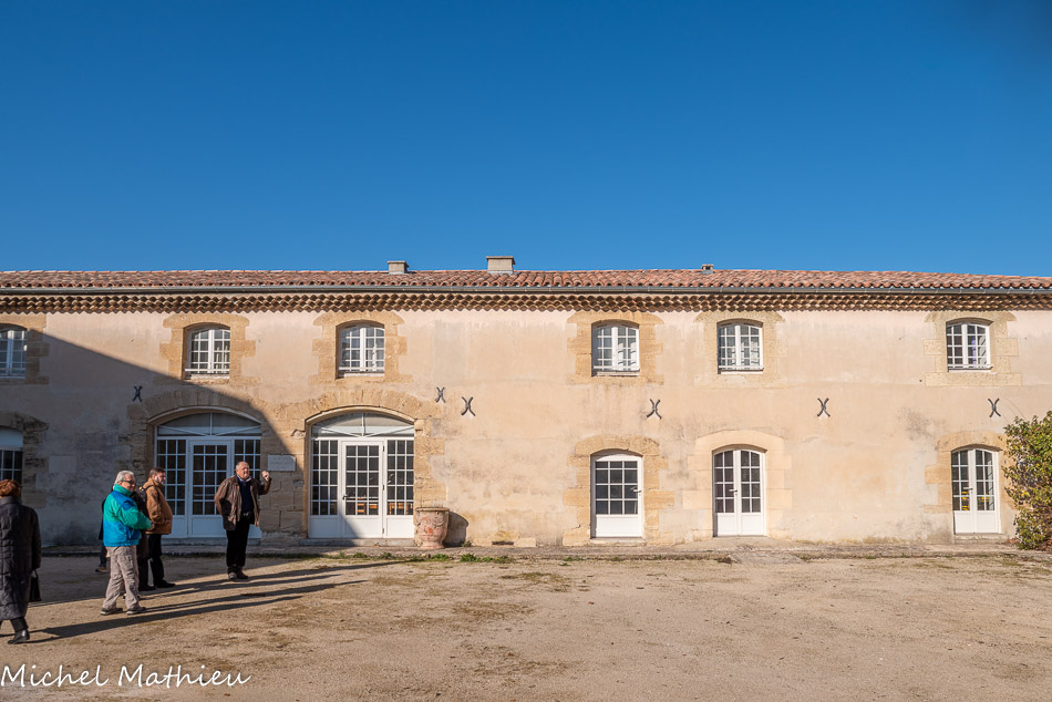 Sur cette façade, les fenêtres sont en anse de panier. Devant se trouve la troisième fontaine.