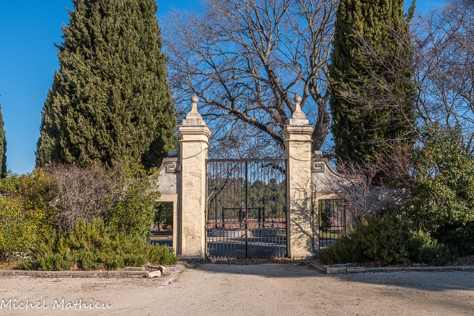 Le portail d'entrée avec le N en fer forgé inclus à la ferronnerie construite par de Gras.