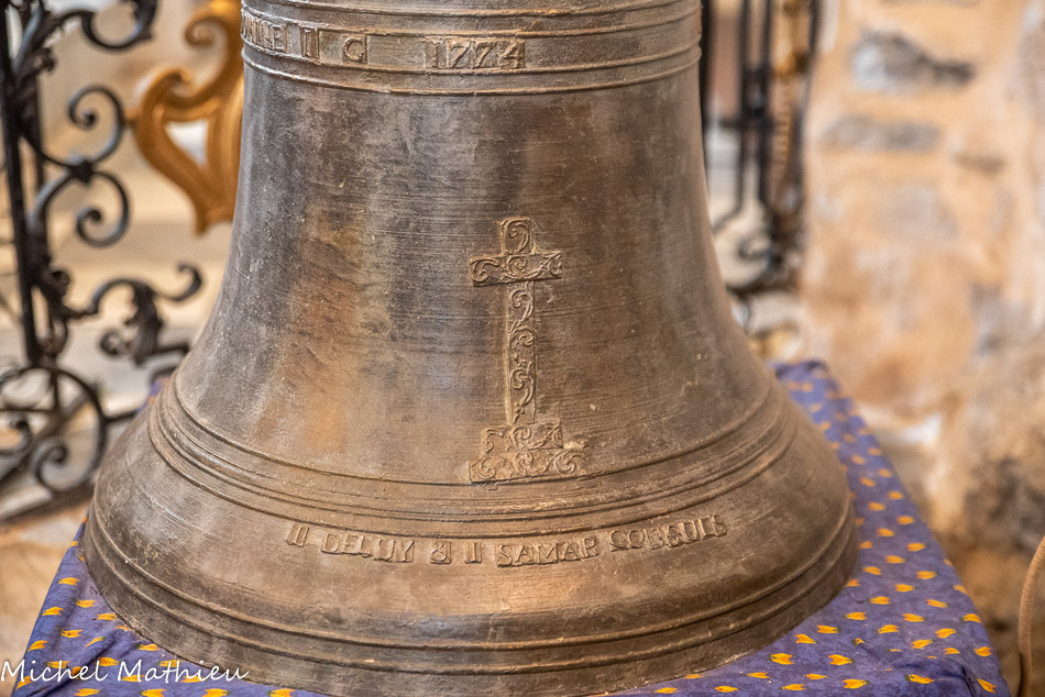 Le clocher de l'église dont le campanile a été rajouté à la Révolution. L'horloge a été placée sur le clocher en 1793 et en 1794 la cloche pour sonner les heures laïques.