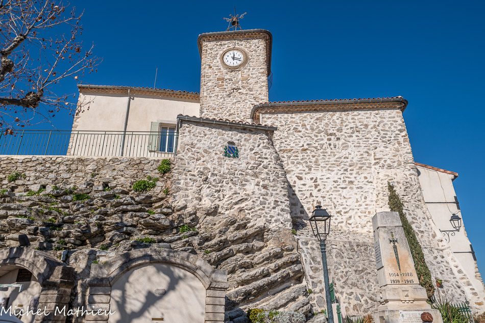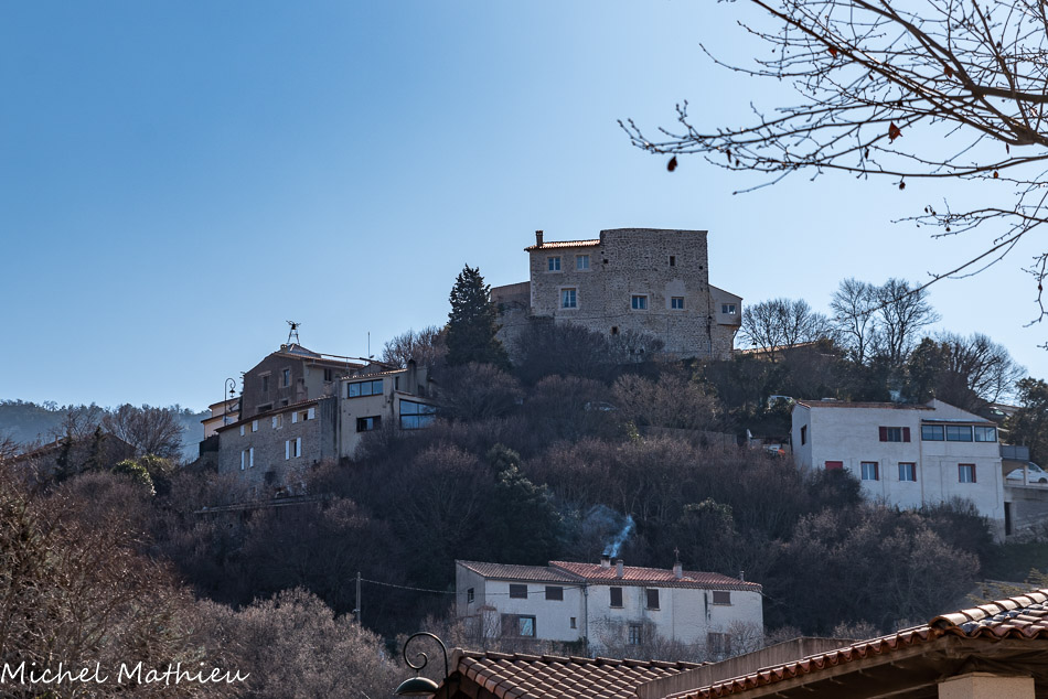 A gauche, le campanile de l'église. Au centre, les restes du château médiéval. La période mérovingienne vit sans doute les moines de St-Victor apparaître dans la région, mais la certitude complète ne nous est donnée qu’en 1022. Au XIe siècle, le pays appartient au comté d’Aix ; son château, situé à 501 m. d’altitude dans une position très forte, date peut-être de cette époque, mais a été fortement remanié et détruit par la suite.