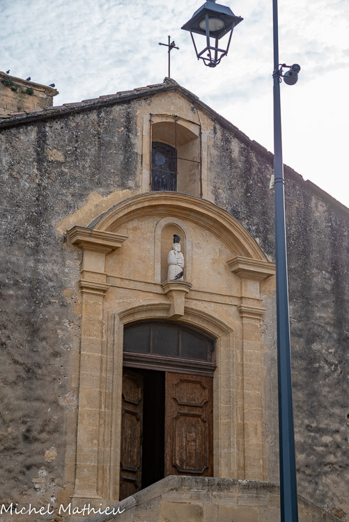 A la première partie, romane, ont été rajoutées des chapelles (bas-côtés) de style gothique sous le Roi René. Au XVIIe siècle quelques modifications lui ont donné son aspect actuel : bâtiment orienté Est-Ouest, composé d'une nef principale encadrée de 2 bas-côtés, et d'une sacristie.