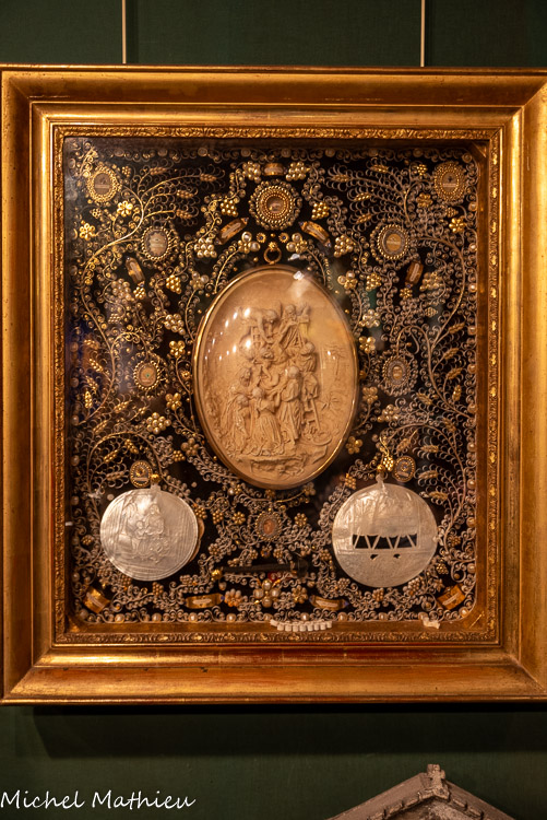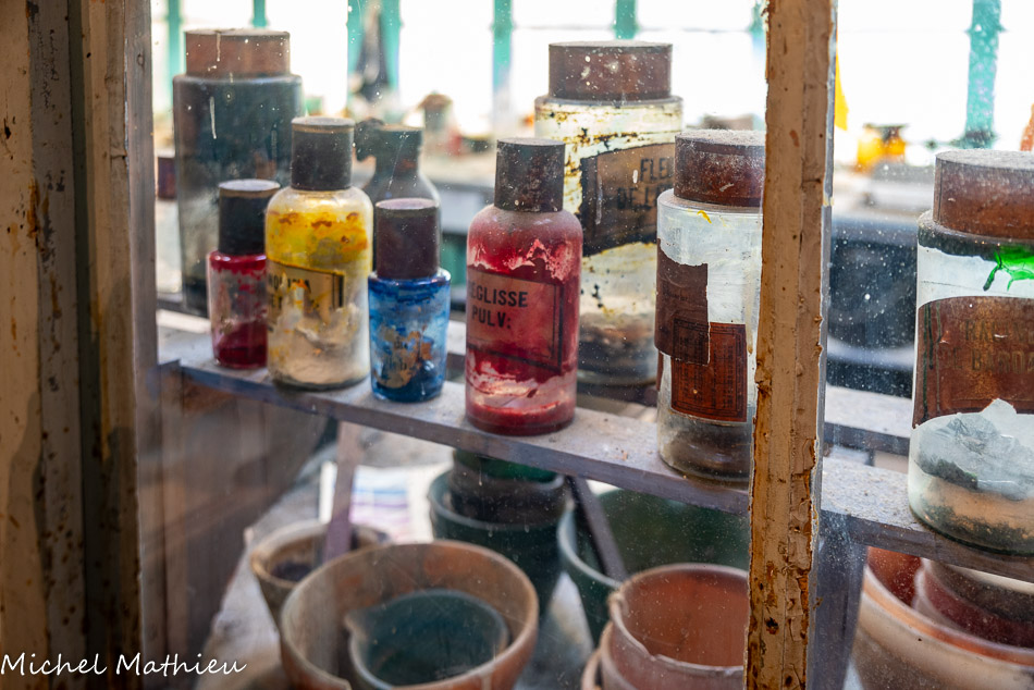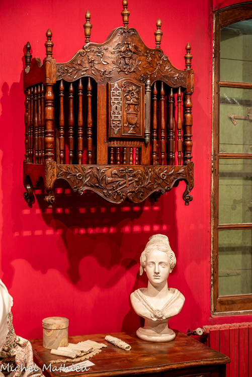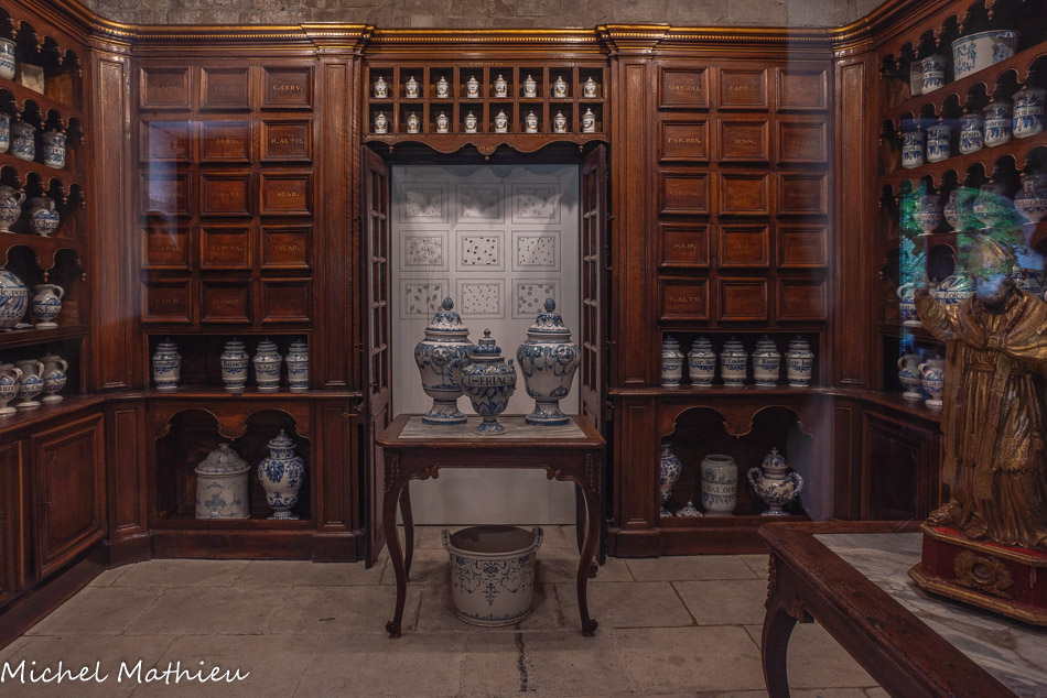 Le bâtiment des communs. . La pièce centrale abrite l'apothicairerie de l'Hôtel-Dieu. Les pots à pharmacie et leurs armoires ont été transférés ici en 1986. Ils sont 212, en provenance de Saint-Jean du Désert (Marseille), Nevers, Moustiers, et surtout Montpellier. Ils datent du XVIIIe siècle. Leur décor bleu est à base de cobalt et de manganèse. Ils sont exposés dans une boiserie du XVIIIe siècle.