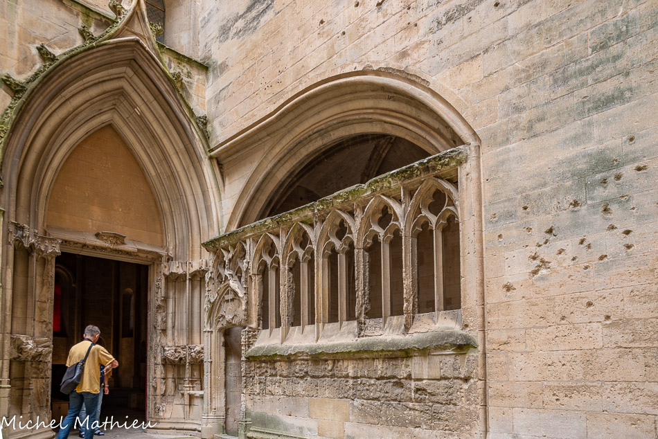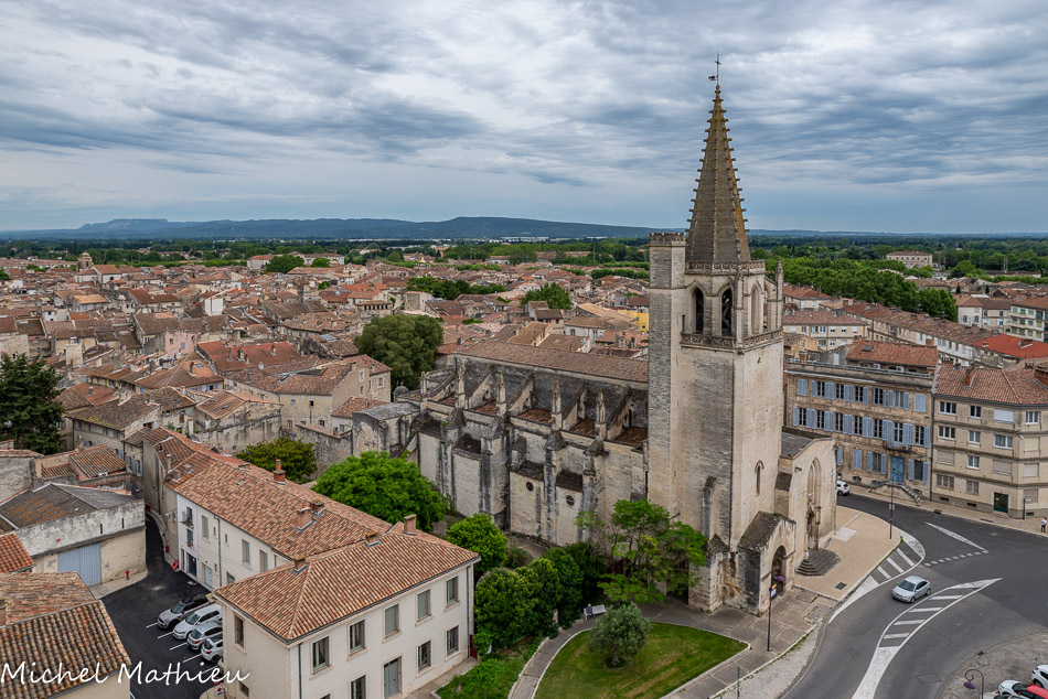 Devant la port d'entrée., vue sur la Collégiale Royale Sainte Marthe.