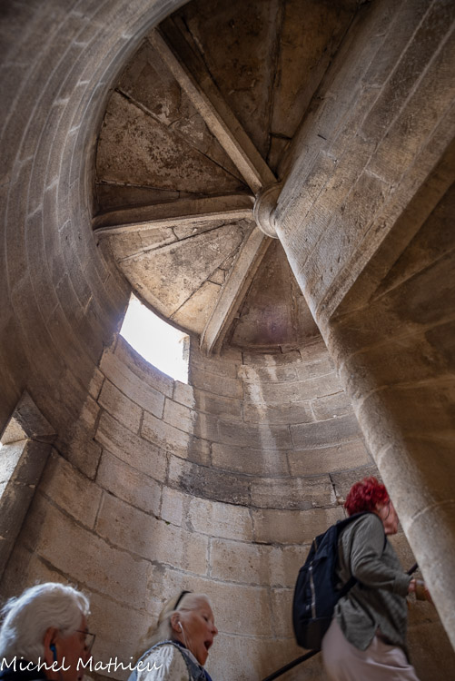 On entrait dans la cour d'honneur par un étroit couloir en chicane permettant une meilleure défense. La chicane est dans la base du donjon.