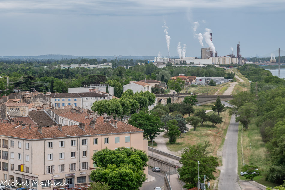 Le château est bâti sur un îlot rocheux en bordure du Rhône qui le longe d'un côté tandis qu'un fossé taillé dans le roc pouvant recevoir les eaux du Rhône le sépare de la ville.Côté Rhône., la Tour carrée du sud-ouest et, derrière, la Tour de l'Artillerie, puis le logis des cuisines. L'aile ouest en bordure du Rhône ne nécessitait pas les mêmes précautions pour la défense, d'où la présence de grandes fenêtres donnant sur le Rhône. Cette aile ne comprend à chaque étage qu'une seule grande salle destinée aux réceptions, cérémonies et banquets.