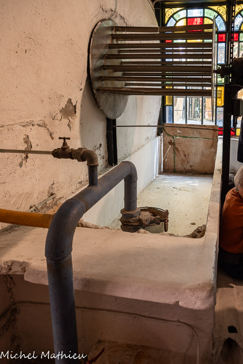 L'eau chaude produisait de la vapeur, sa densité était surveillée par un manomètre. La chaudière devait être poussée jusqu'à 190°, pour que la vapeur atteigne les 90°. C'est seulement à cette température qu'était libérée la vapeur. Elle s'engouffrait alors dans les conduits qui alimentaient l'étuve.