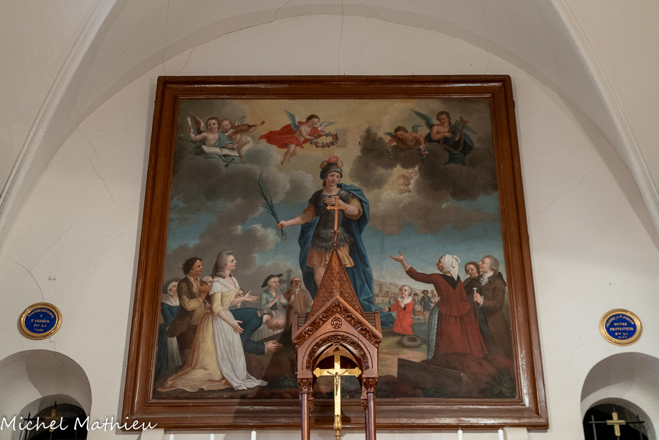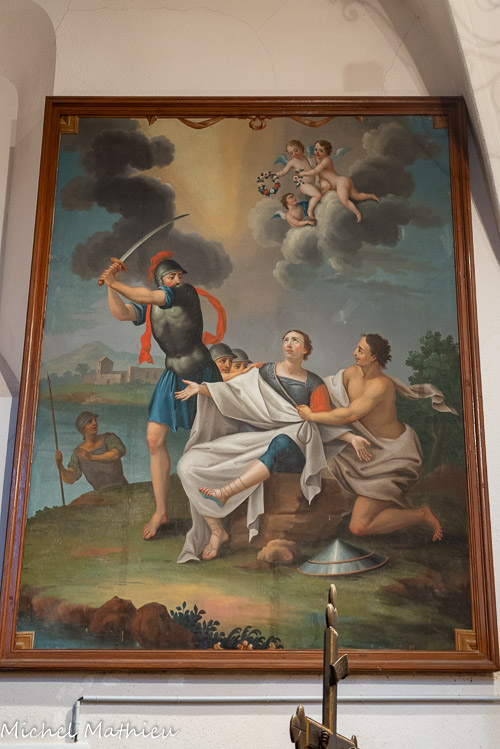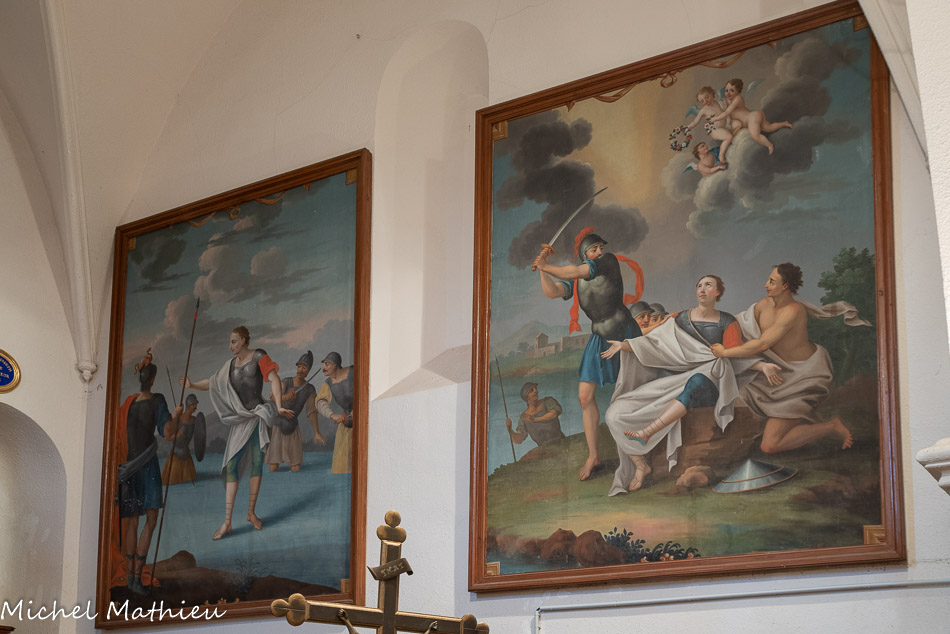 A gauche de l'entrée. L'archange Raphaël conseille à Tobie de prendre le poisson qui va guérir de sa cécité son père, et Sara, sa future femme, tourmentée par sept démons. Encadrant la porte, l'archange Raphaël.