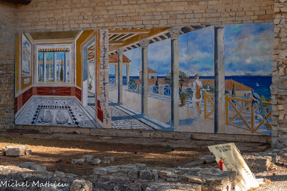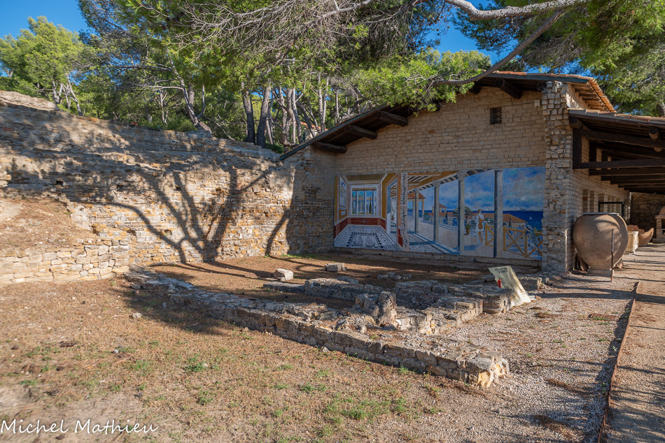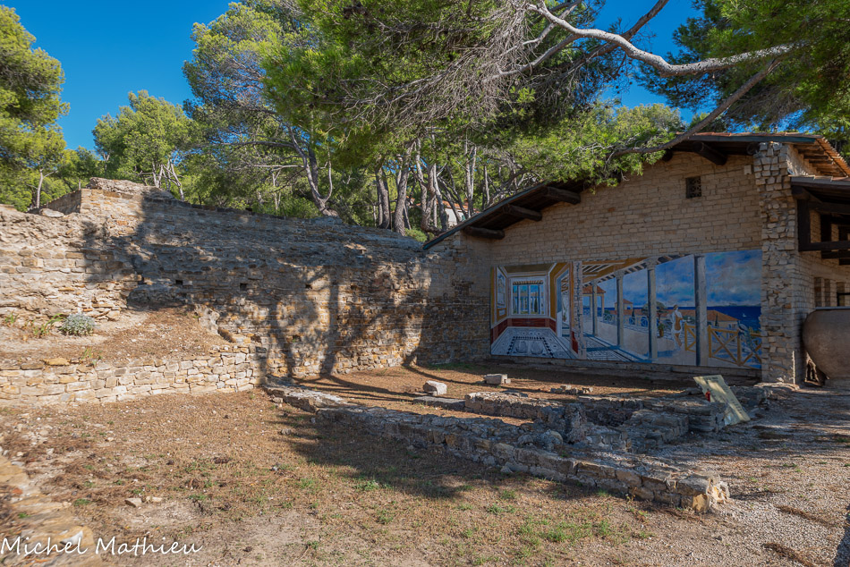 Ce site est celui d’une villa romaine, ce terme désignant à la fois l’habitation d’une famille et aussi une exploitation agricole Une partie de cette villa a pu être datée entre 50 et 70 ap. J.C. Ces aquarelles de l’archéologue Jean-Marie Gassend, évoquent l’apparence générale de la villa dans le paysage du Ier s. ap J.-C. Ce paysage a beaucoup évolué depuis à cause du comblement progressif de la lagune appelée « plan de la mer» au nord de la villa Cette « villa maritima » c’est-à-dire villa située au bord de la mer, bâtie sur des terrasses, était caractérisée par un portique dominant le golfe. Il avait 80 m de longueur et ses colonnes étaient en granit, C’était une construction confortable (avec eau chaude, chauffage central, thermes privés... ) et même luxueuse (avec ses jardins, ses grands bassins, ses mosaïques et ses fresques). On estime qu’environ 100 personnes étaient nécessaires pour son seul entretien. Le propriétaire était certainement un homme riche et cultivé, connaissant la mode romaine de son époque. Cette villa a été bâtie pendant la période de la Pax Romana qui a duré 300 ans pendant lesquels l’expansion économique a favorisé le développement du goût du confort et du luxe.