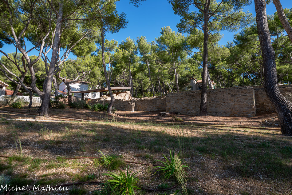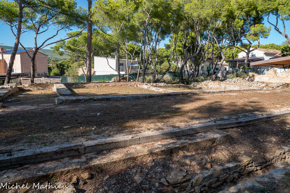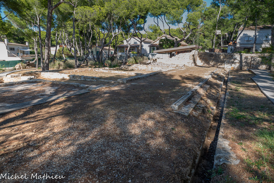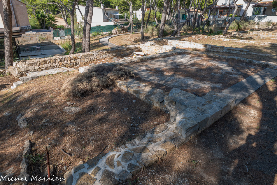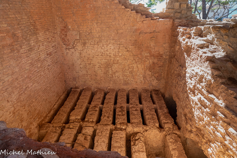 Un impluvium. La pars urbana, zone privée de la villa, n’a pas été construite dans la partie basse du terrain par hasard mais pour profiter de deux avantages: la proximité de la mer et l’utilisation de la gravité pour obtenir de l’eau courante captée à une altitude de plus ou moins 80 m en amont (La Nartette) et stockée dans un grand réservoir établi sur la hauteur proche de la villa.