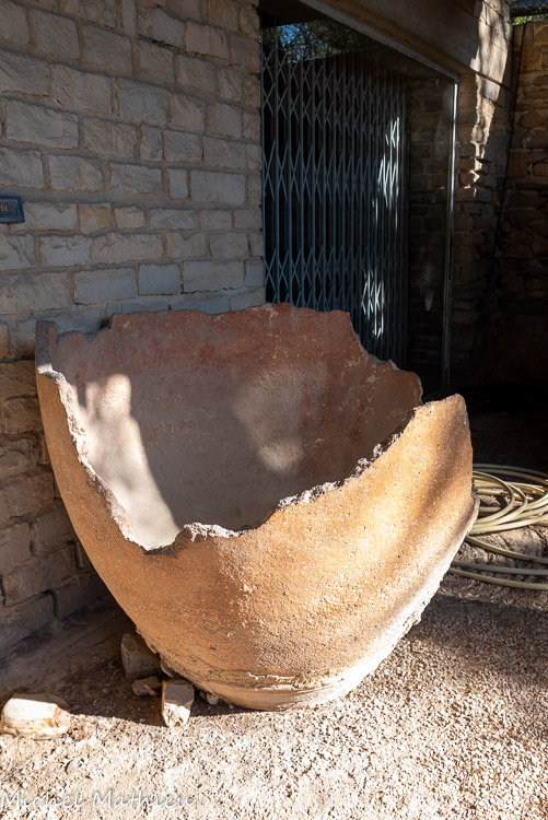 Ce dolium du Ier siècle, d’environ 1500 litres et d’un poids à vide de 430 à 500 kg, provient des travaux de construction de la villa Mazeric à la Madrague en 1934. D’après les relevés de l’époque, il faisait partie d’un ensemble formant un chai devant un mur de 70 m de long. Don de M. Mazery (Villa Neptos).